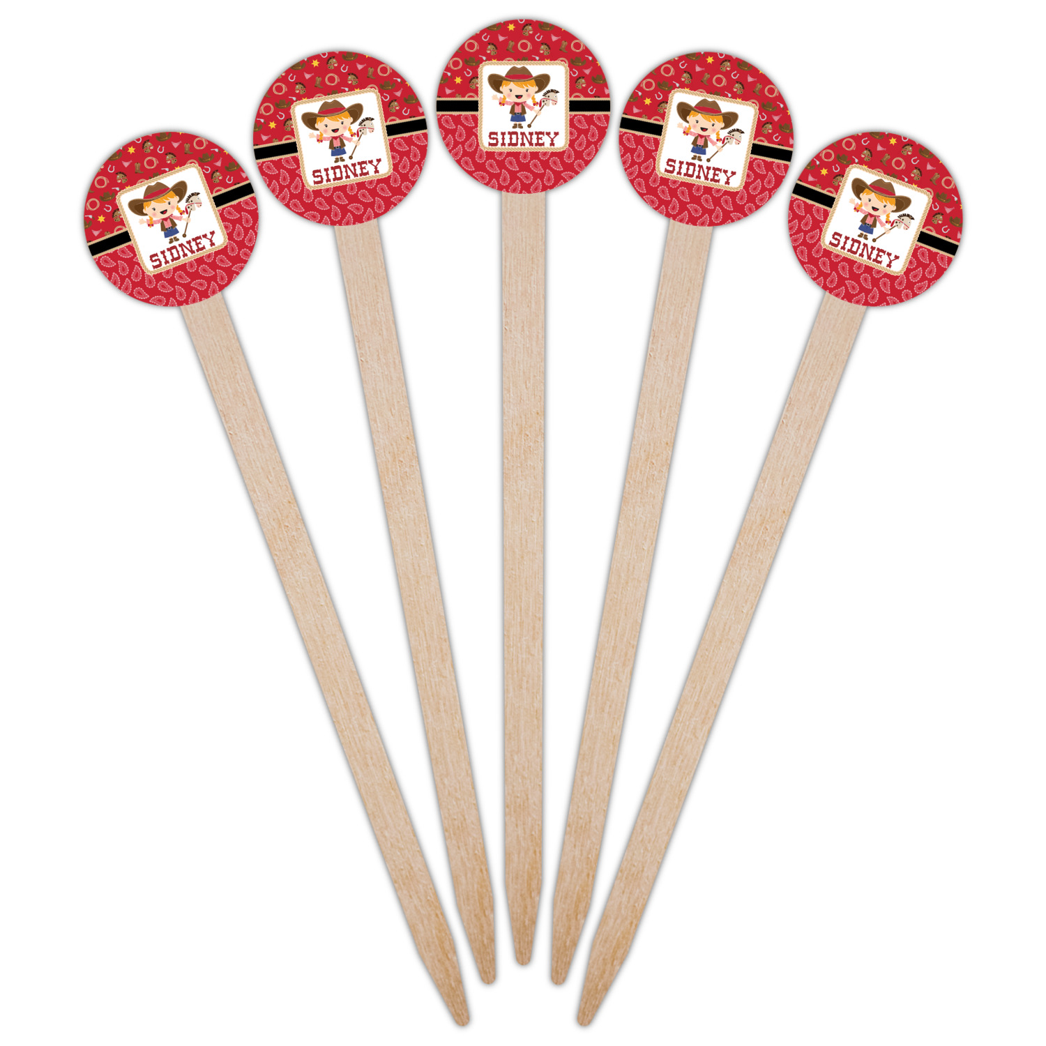 A rope outlined square label showcasing our cute little cowgirl holding her trick pony and lasso has your little one dreaming of riding the range one day.