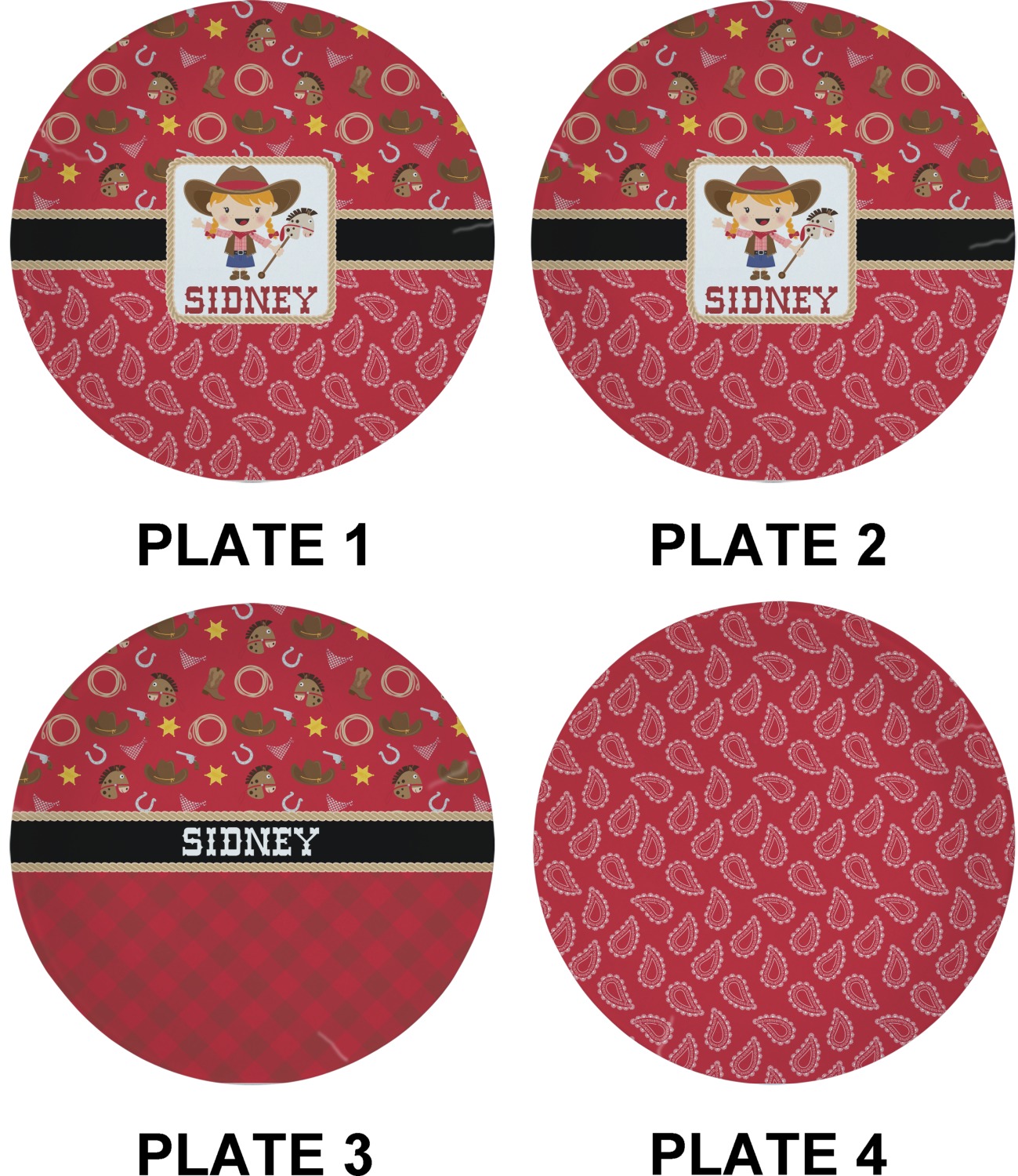 With a of designs and patterns, these plates are completely customizable. Choose a foodie design, complete with red-hot chili peppers, or go classic with stripes or plaid. Include your monogram or family name to make sure these plates never get lost at parties!