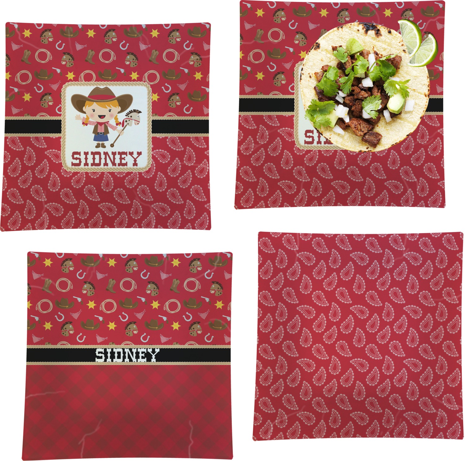 Horseshoe Designs for Glass Square Lunch / Dinner Plates 9.5" - Set of 4