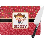 A rope outlined square label showcasing our cute little cowgirl holding her trick pony and lasso has your little one dreaming of riding the range one day.