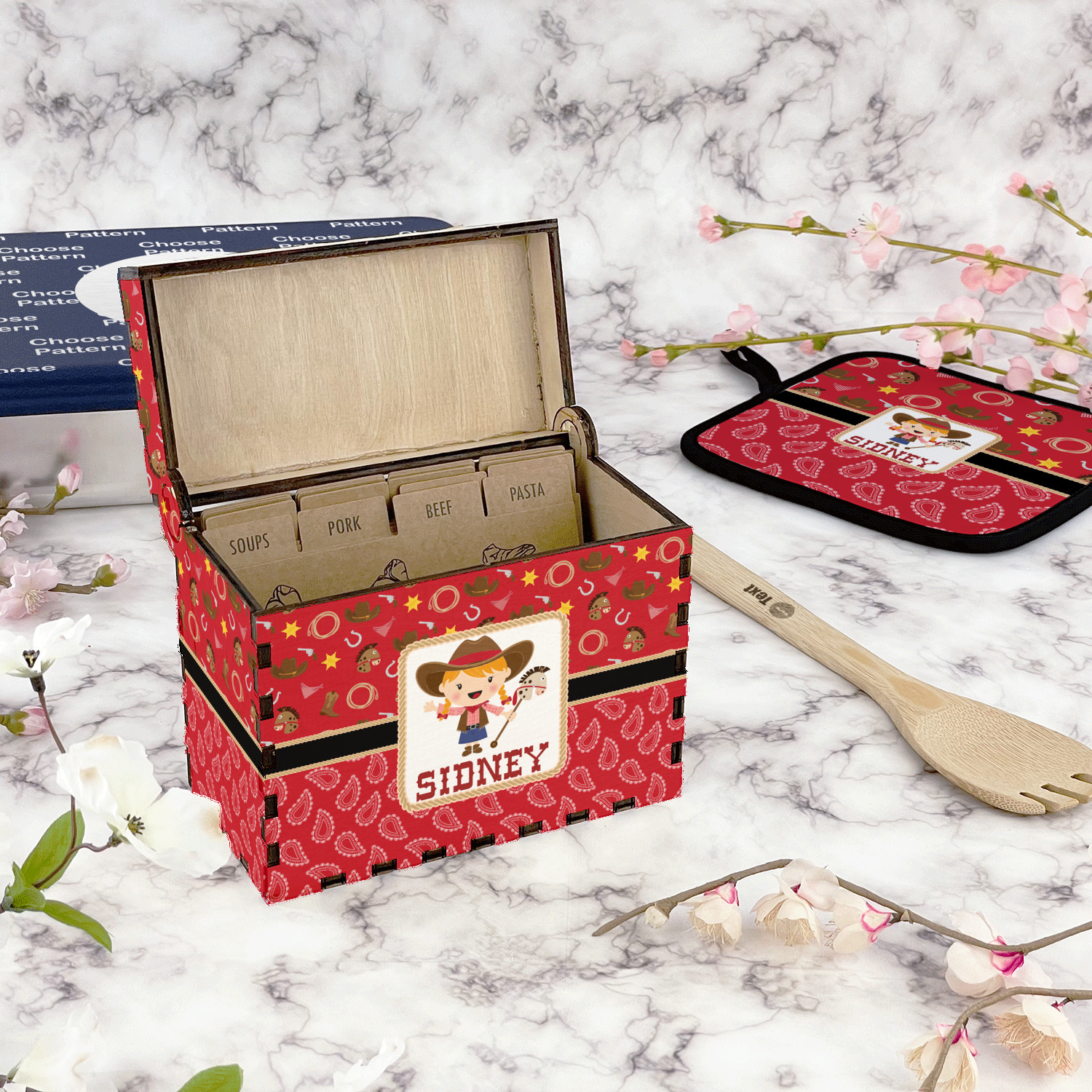 For a classic look for your kitchen counter to hold all of your family heirloom recipes look no further than this full color printed wood recipe box. These recipe boxes are sure to add a nice custom touch to your kitchen and allow you to proudly display your treasured family recipes in a beautiful custom recipe box.
