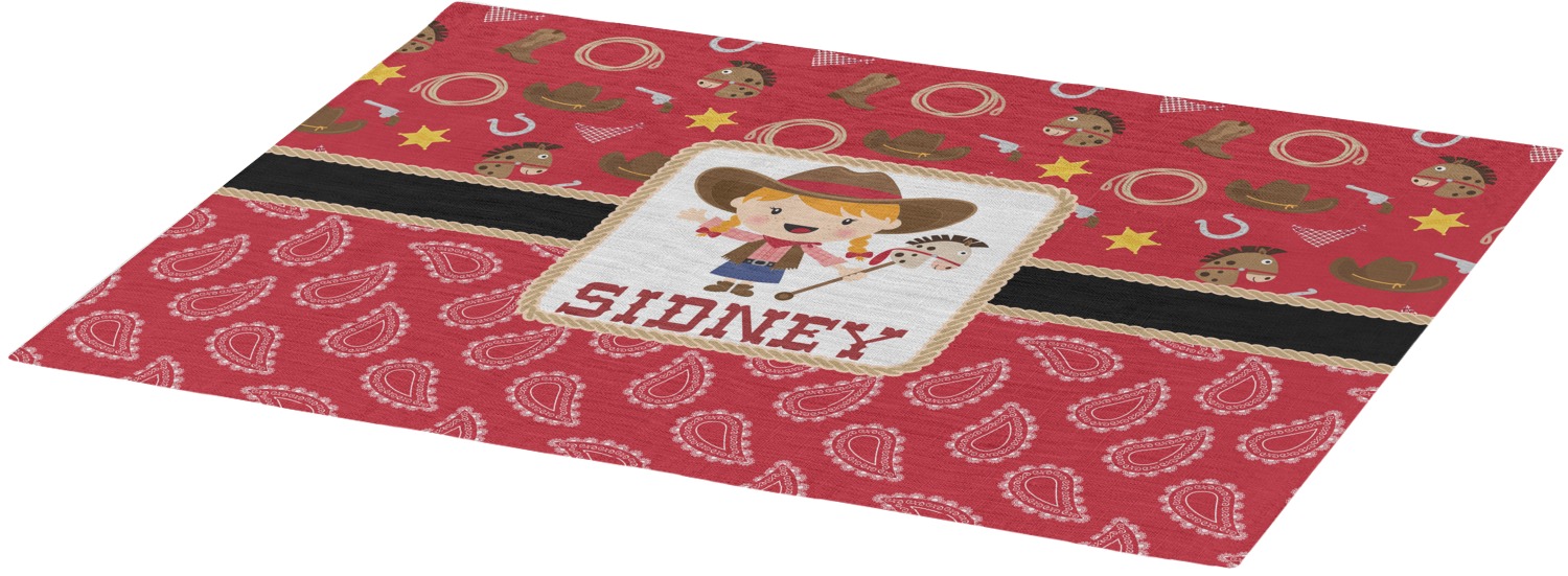 Howdy Y'all! What little country girl wouldn't want to be surrounded by this cute Western theme design? Set on a backdrop of red, the horses, cowboy boots and hats, rope, guns, Sheriff badges, and bandannas set the scene for a hoedown every day. A coordinating red gingham pattern on the bottom tie the entire design together. A wide band of red trimmed in rope add that special touch of design.