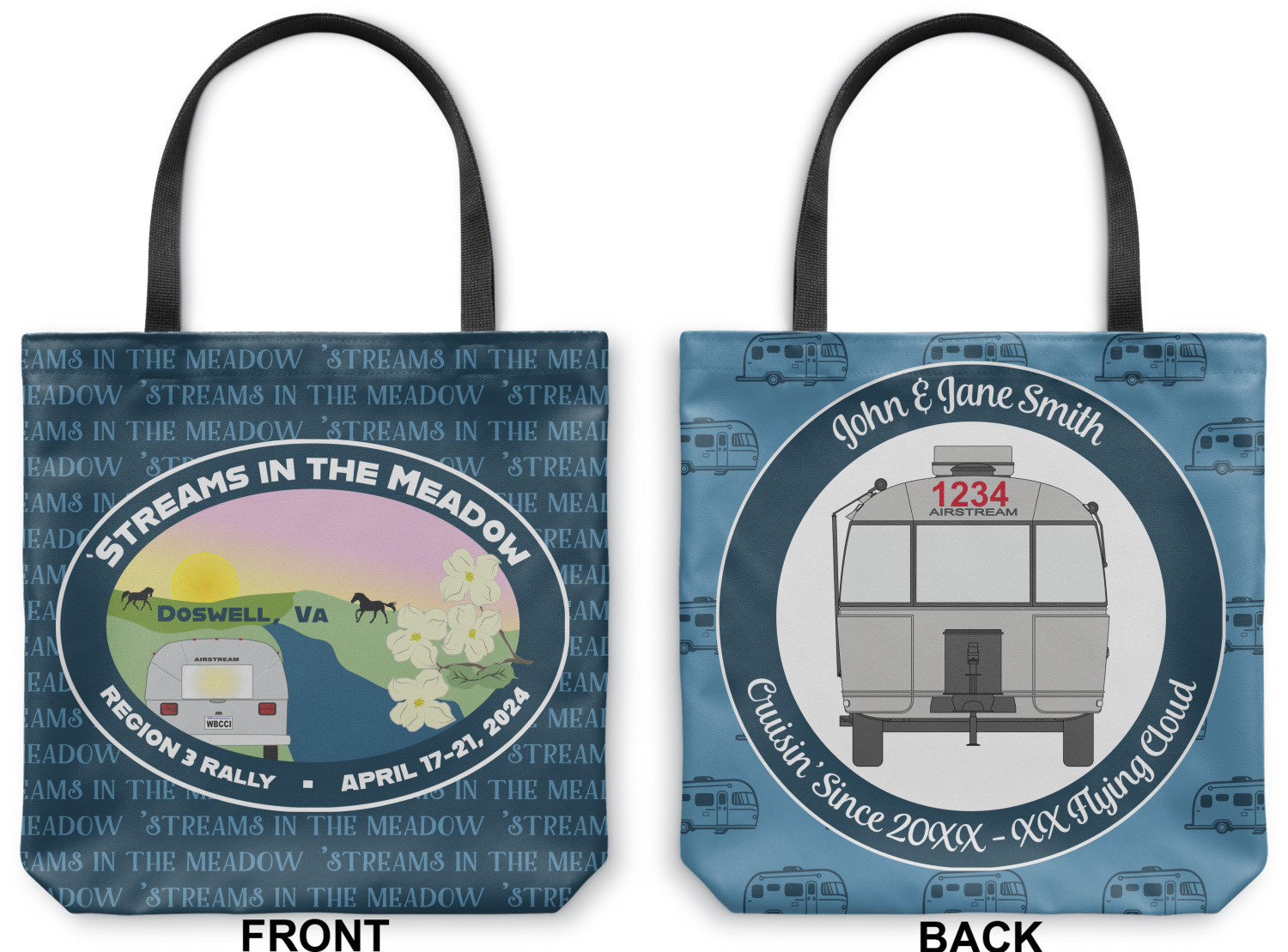Our totes are made right here in the USA. Your design is printed on canvas fabric; the fabric is then cut and sewn on the sides and on the bottom to add an approximately 3.5 inch gusset. Black cotton handles are sewn in and reinforced. Your tote has a designs on both sides - the designs can be the same or different - the choice is yours. The inside of the tote has a black fused lining.