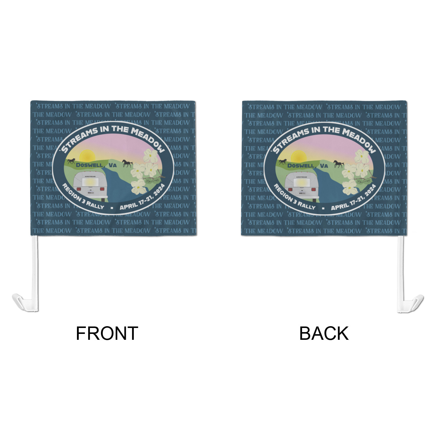 Our personalized flags are made from a durable, yet lightweight cloth that will proudly bear your logo or design of choice, while withstanding the outside elements. We have two size options - 8" x 11" and 11" x 15". Both come with a flag pole which includes a clip that secures the pole to the side window, whether it is rolled up or down. The flags are printed on both sides to display your design from all directions.