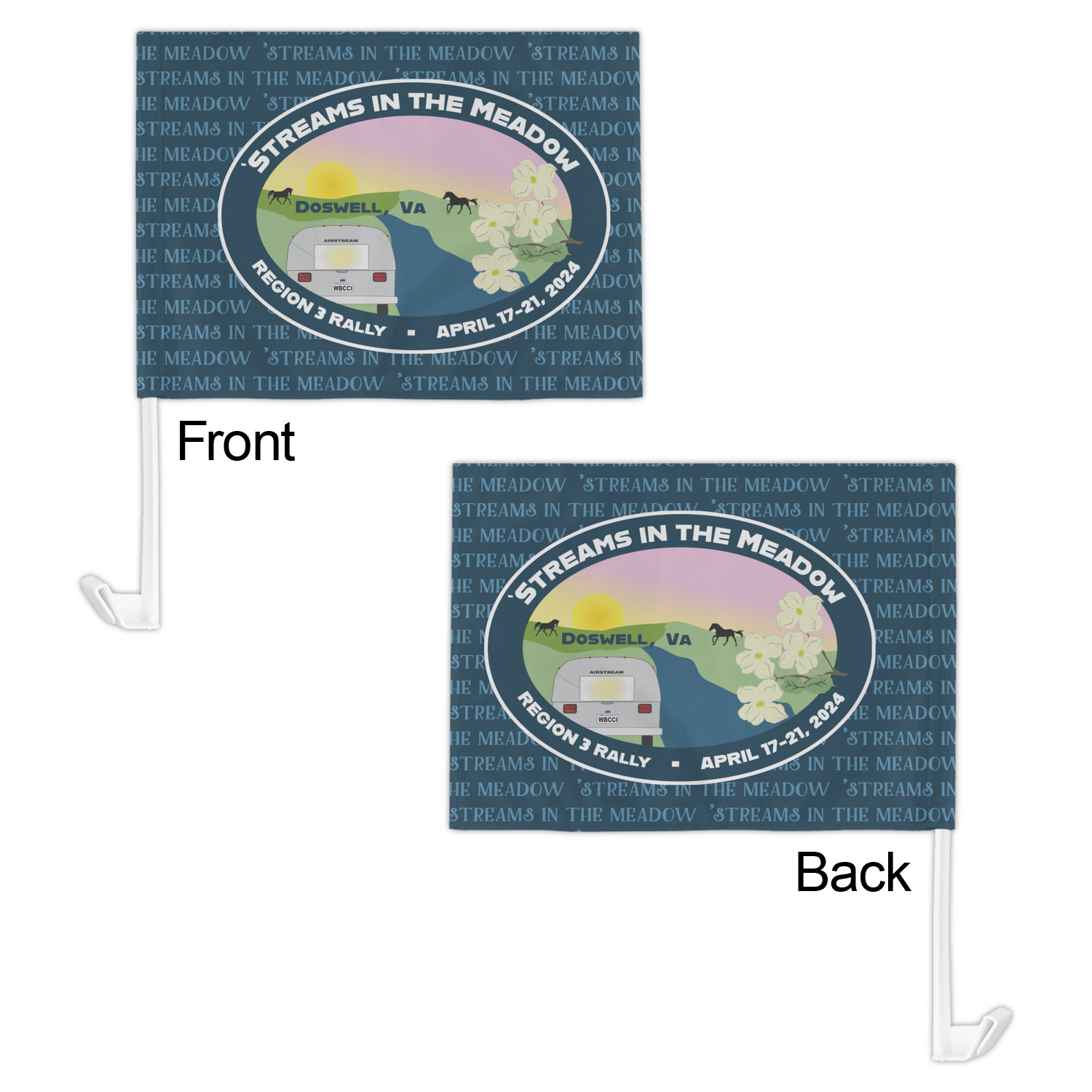 Our personalized flags are made from a durable, yet lightweight cloth that will proudly bear your logo or design of choice, while withstanding the outside elements. We have two size options - 8" x 11" and 11" x 15". Both come with a flag pole which includes a clip that secures the pole to the side window, whether it is rolled up or down. The flags are printed on both sides to display your design from all directions.