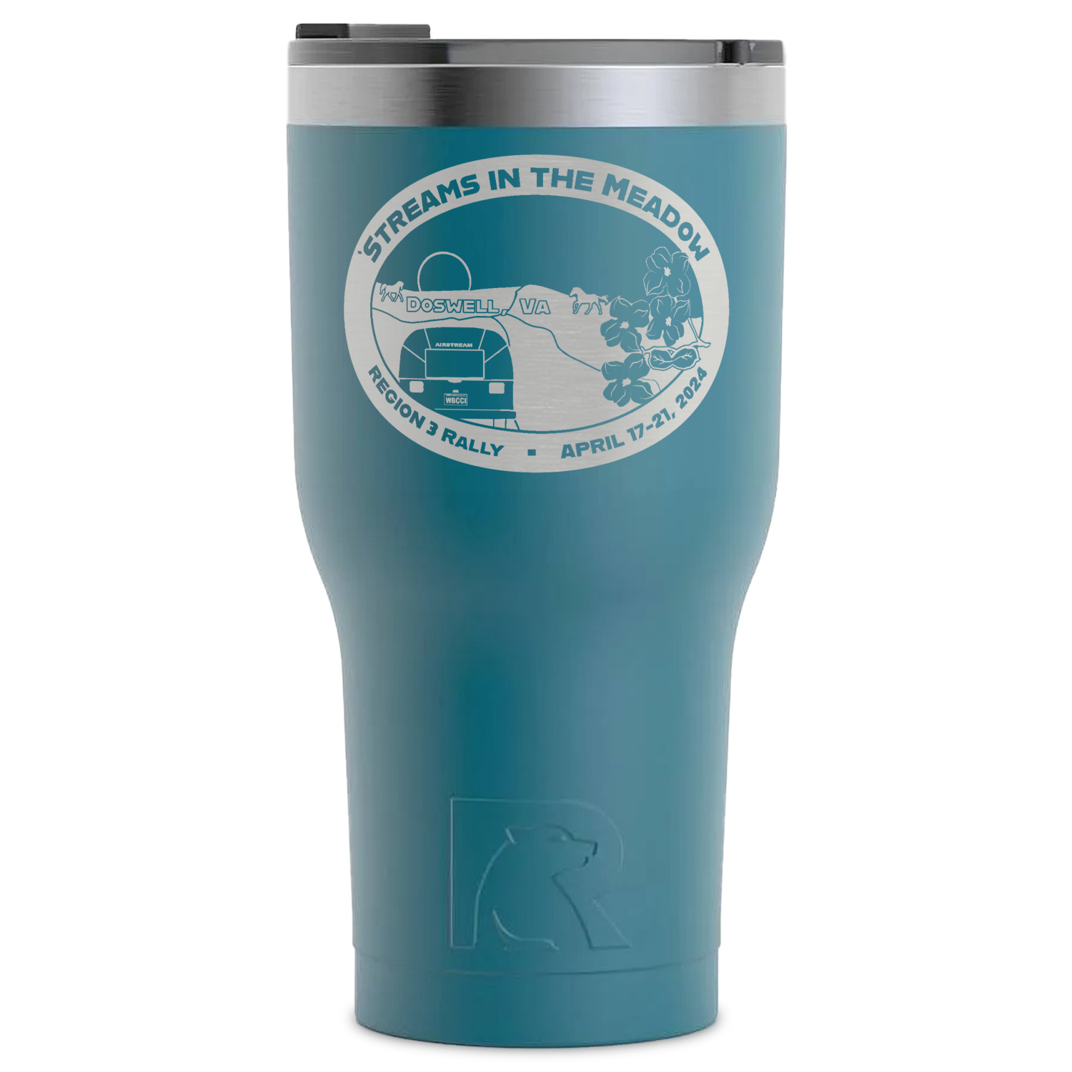 We sell these RTIC 30 Oz Tumblers in three different colors with two different engraving options. Choose from our selection of teal, white, or black. You can either choose to engrave the front only or both front and back. Your engravement will reveal the stainless steel material beneath the powder color coating, creating your personalization in a beautiful silver.