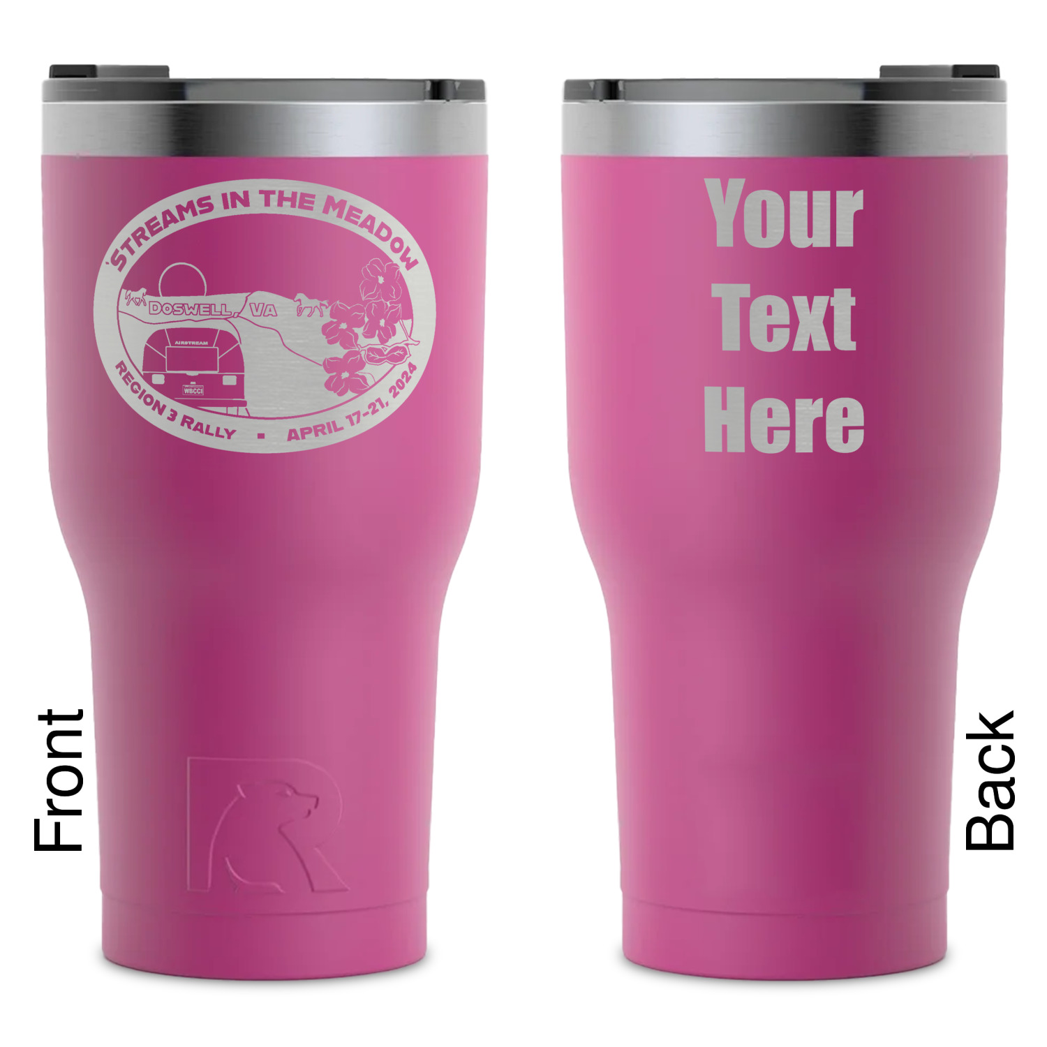 We sell these RTIC 30 Oz Tumblers in three different colors with two different engraving options. Choose from our selection of teal, white, or black. You can either choose to engrave the front only or both front and back. Your engravement will reveal the stainless steel material beneath the powder color coating, creating your personalization in a beautiful silver.
