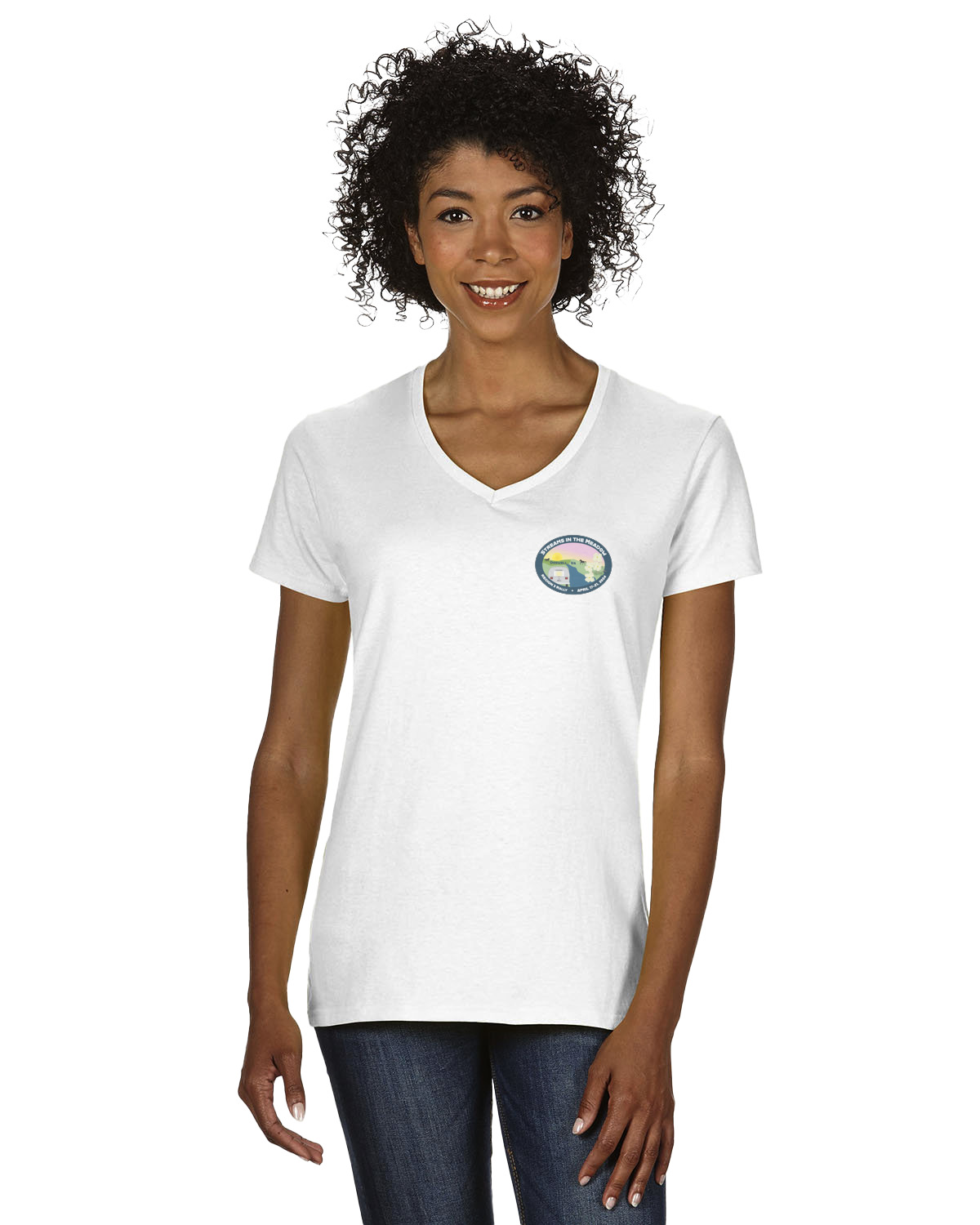 Introducing our versatile Women's V-neck shirt, tailored for a flattering missy contoured silhouette. Crafted from premium 5.3 oz. USA cotton with sustainable practices, it features cap sleeves and a tear-away label for added convenience. With sizes catering to all, enjoy comfort and style in every wear.