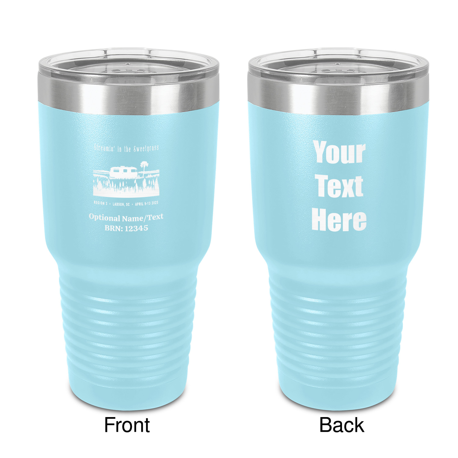 With our personalized 30 oz double wall stainless steel tumblers, you'll never have to settle for a plain, boring tumbler again! These tumblers will be a wonderful addition to your drinkware collection and will make those long commutes much brighter. Personalize one for yourself, or give these personalized tumblers as a gift to relatives, friends, or coworkers!