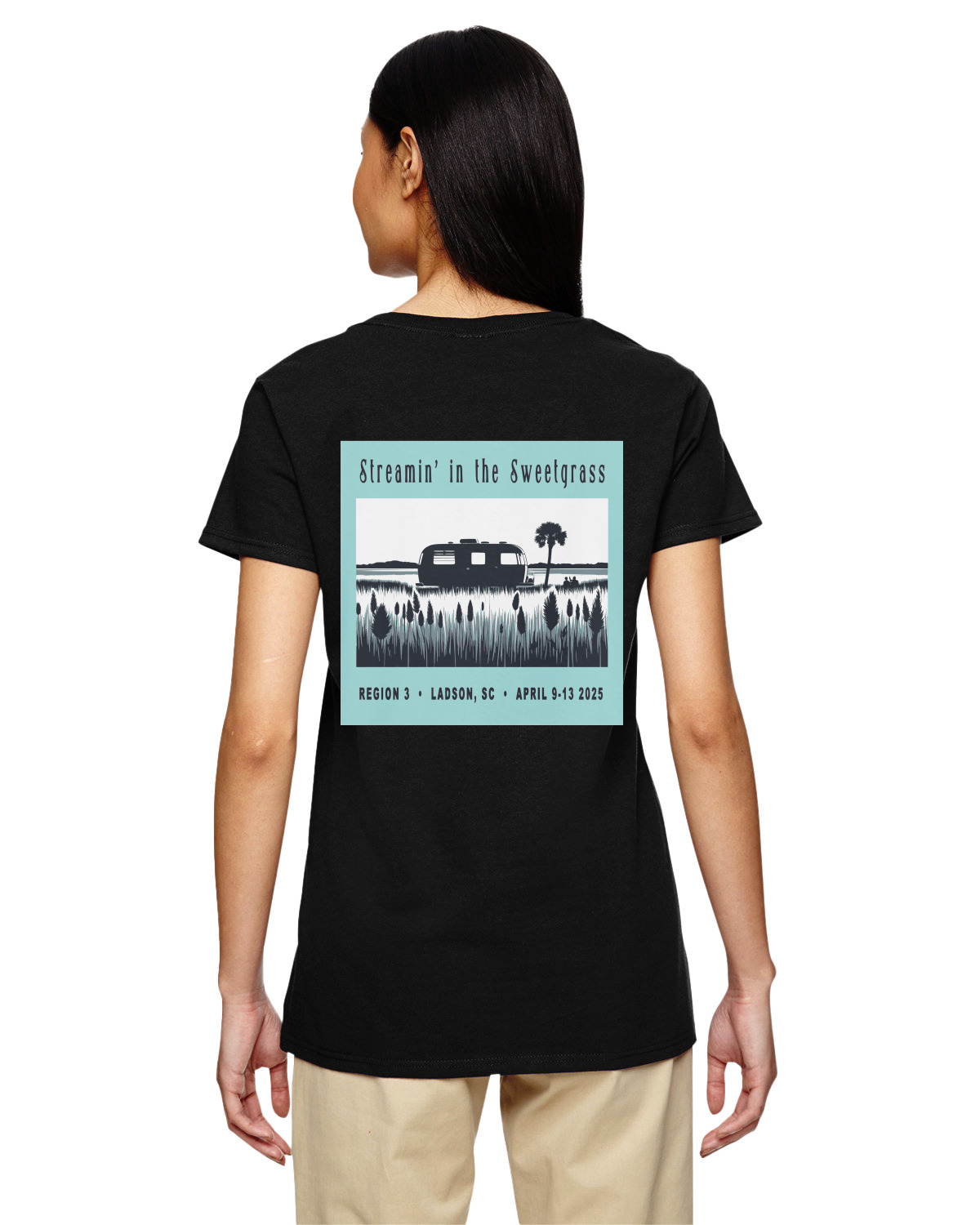 Introducing our versatile Women's V-neck shirt, tailored for a flattering missy contoured silhouette. Crafted from premium 5.3 oz. USA cotton with sustainable practices, it features cap sleeves and a tear-away label for added convenience. With sizes catering to all, enjoy comfort and style in every wear.