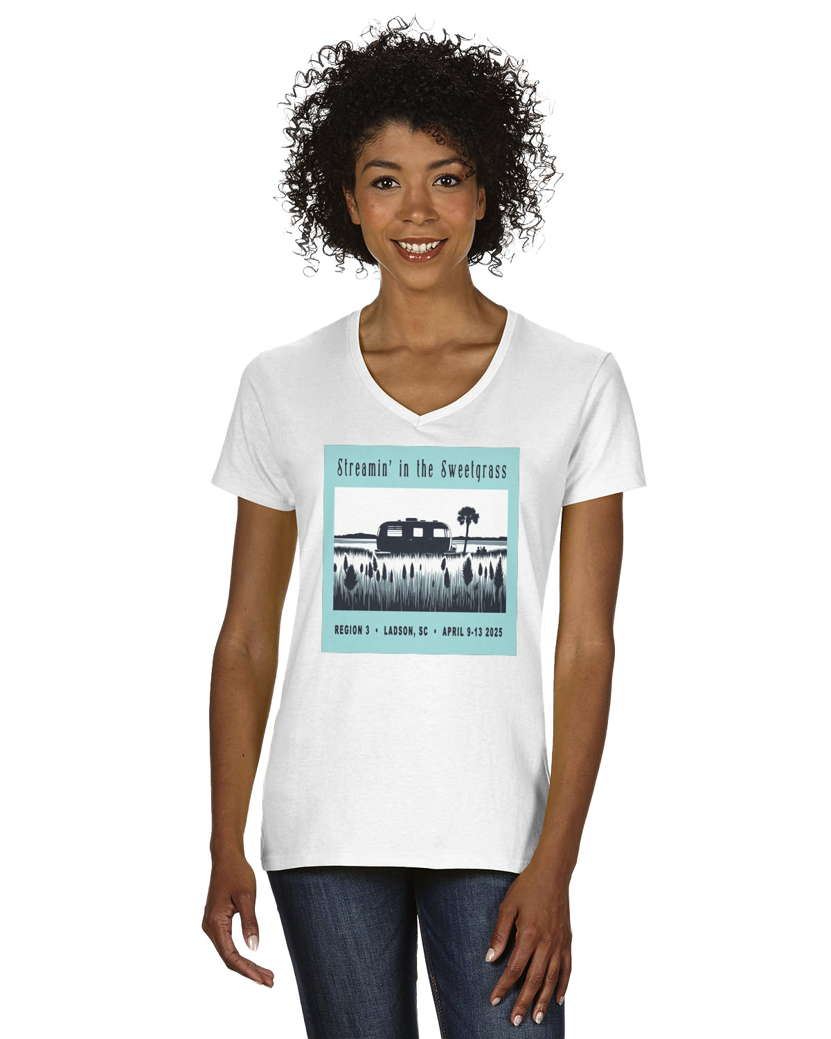Introducing our versatile Women's V-neck shirt, tailored for a flattering missy contoured silhouette. Crafted from premium 5.3 oz. USA cotton with sustainable practices, it features cap sleeves and a tear-away label for added convenience. With sizes catering to all, enjoy comfort and style in every wear.