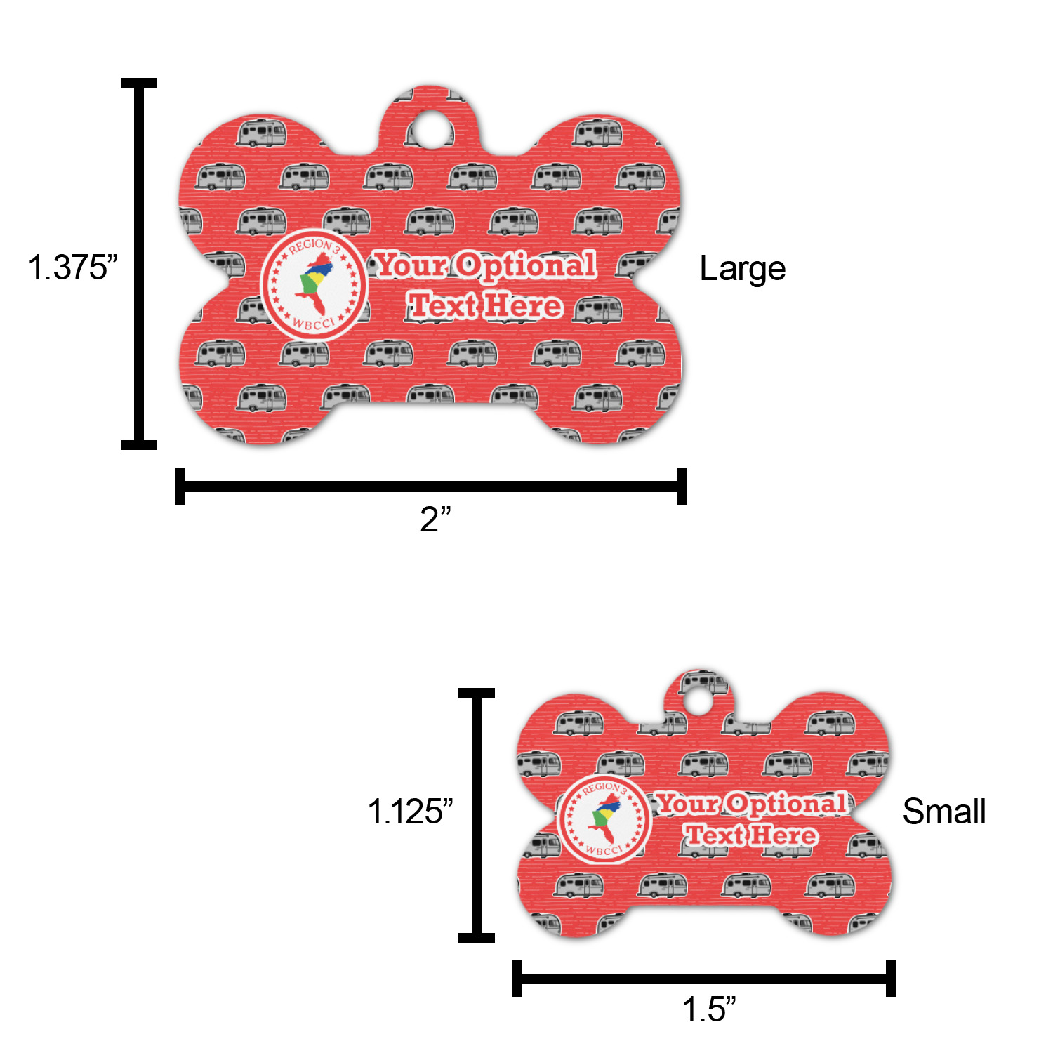 The small bone dog tag size is perfect to pair with our small dog collars, the large size pairs well with our large dog collars.