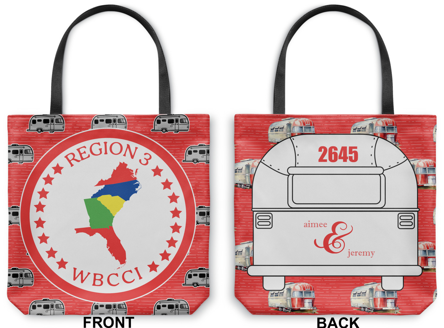Our totes are made right here in the USA. Your design is printed on canvas fabric; the fabric is then cut and sewn on the sides and on the bottom to add an approximately 3.5 inch gusset. Black cotton handles are sewn in and reinforced. Your tote has a designs on both sides - the designs can be the same or different - the choice is yours. The inside of the tote has a black fused lining.