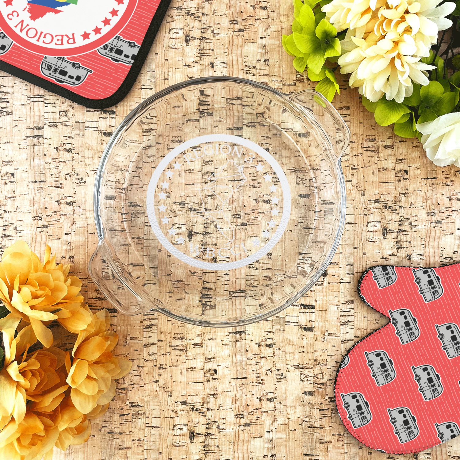 Made from an Anchor Hocking 9.5" glass pie plate, then personalized with the design of your choice, you're sure to love these 100% made in the USA pie plates. The scalloped edge gives these the classic pie plate look and the tapered edges allow the pie to be served easily.