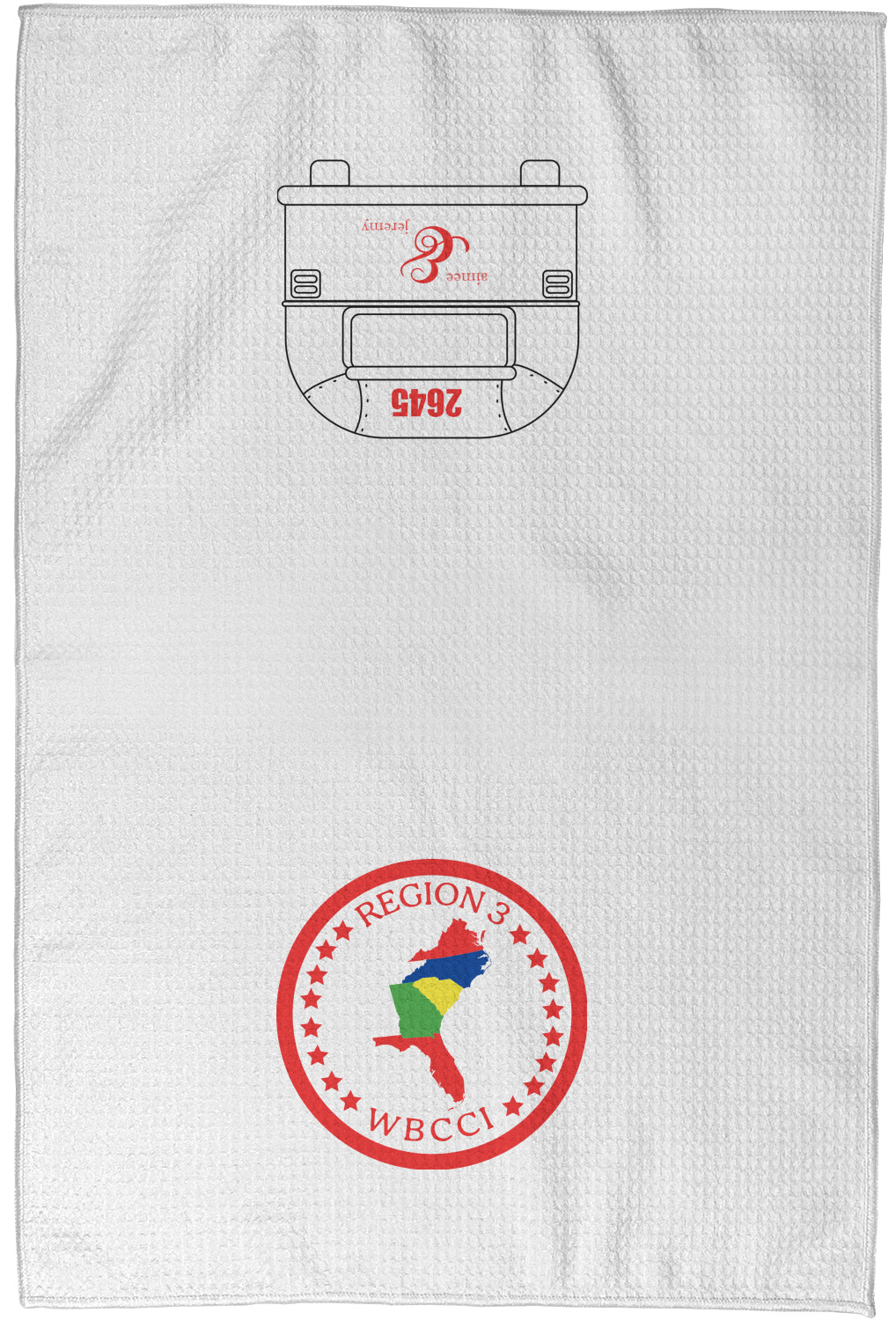 Each waffle weave kitchen towel is approximately 16 x 24 inches with your design printed on one side and the back is white.