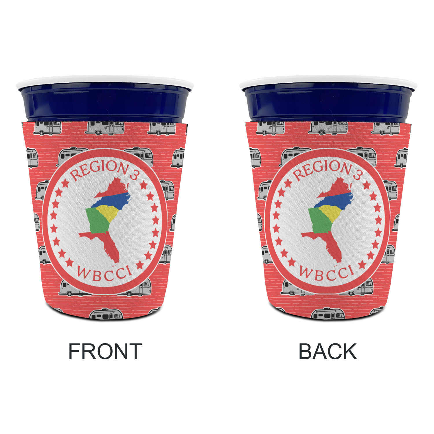 Made from neoprene with a polyester outer fabric and sewn seams, these premium quality party cup sleeves are very durable and will hold up to heavy use. They are available in 2 styles - with a bottom or just a sleeve to go around the outside of the tapered cup. The sleeve covers are about 4" tall and cover about 90% of the classic 16 oz. Solo cup.