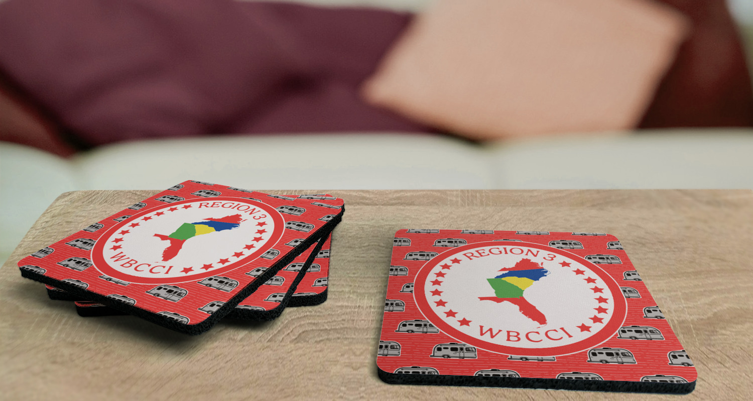 These drink coasters have a smooth, polyester top and a textured, rubber backing on its bottom. The non-slip rubber backing underneath works to keep any spills at bay. At 4 by 4 by 0.25 inches thick, these custom coasters are a suitable size for most drinkware. Your personalization is displayed atop the face of the cup coaster. We sell these rubber coasters in two different shapes: square and round. You can buy each shape as singulars or as a set of 4.