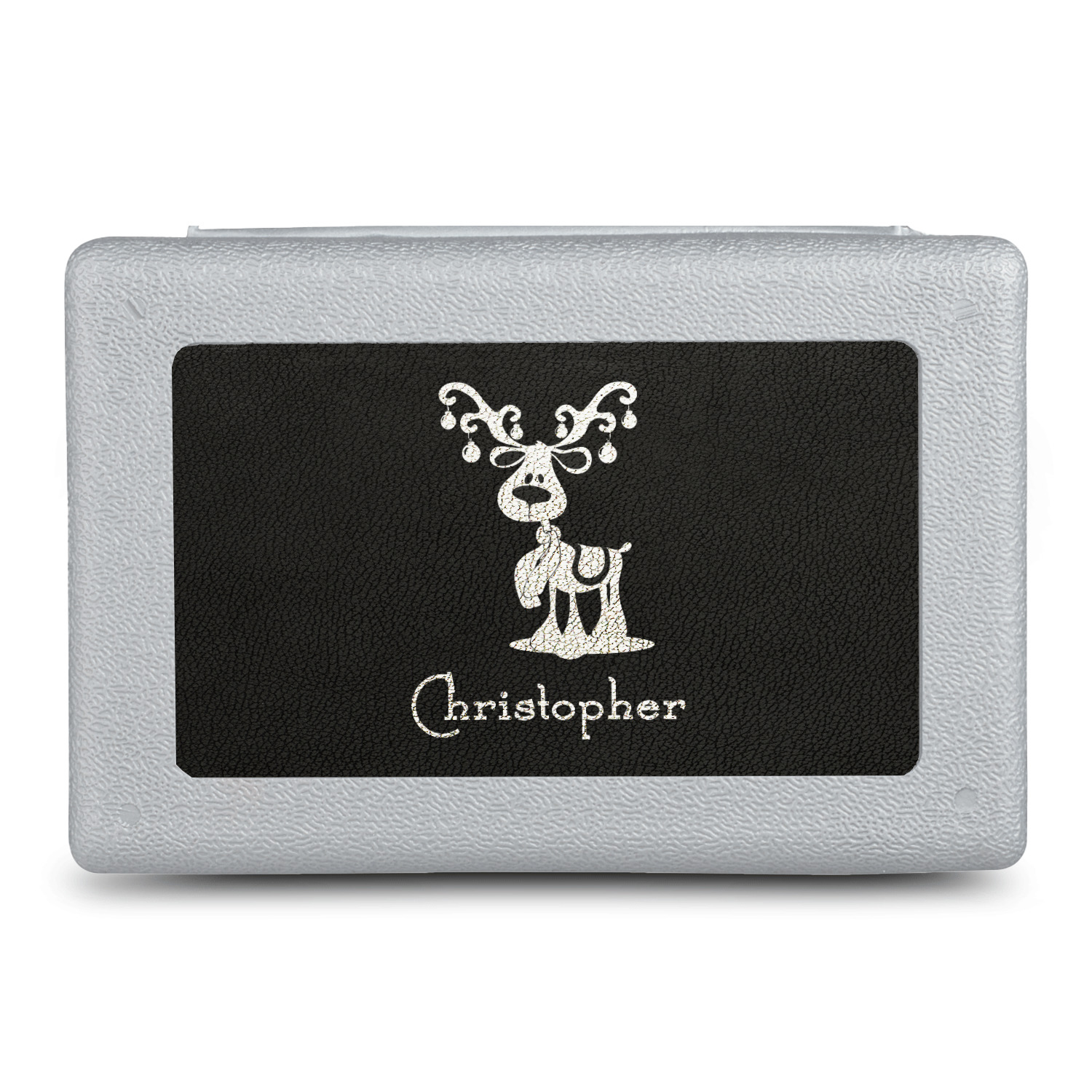 Who doesn't love reindeer? Everyone can agree this fun design of Santa's famous helpers clad in festive scarves and ornaments on their antlers, surrounded by candy canes, gingerbread men, and Christmas stockings, likely stuffed with even more goodies, is absolutely adorable. The ribbon and label are red, and the label includes a little reindeer, ready for the holidays, along with your name or text for personalization.