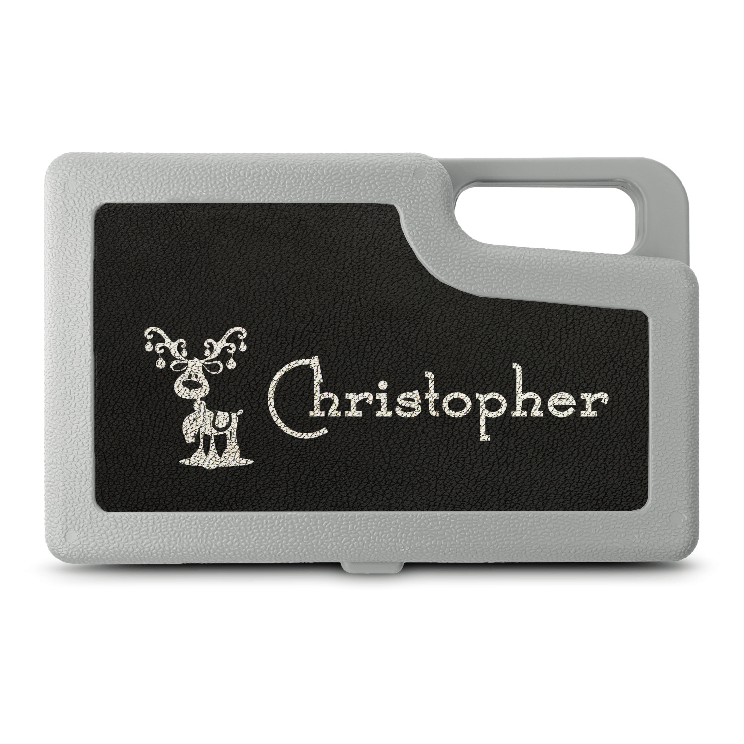 In a hard shell plastic case which measures 12in long by 7.5in wide and 3in tall, this tool kit is the perfect size to easily fit in a trunk or small compartment without taking up too much room. With the black faux leather on the outside engraved with your choice of personalization you can make this tool kit to be uniquely yours to ensure it stays with you for a lifetime!