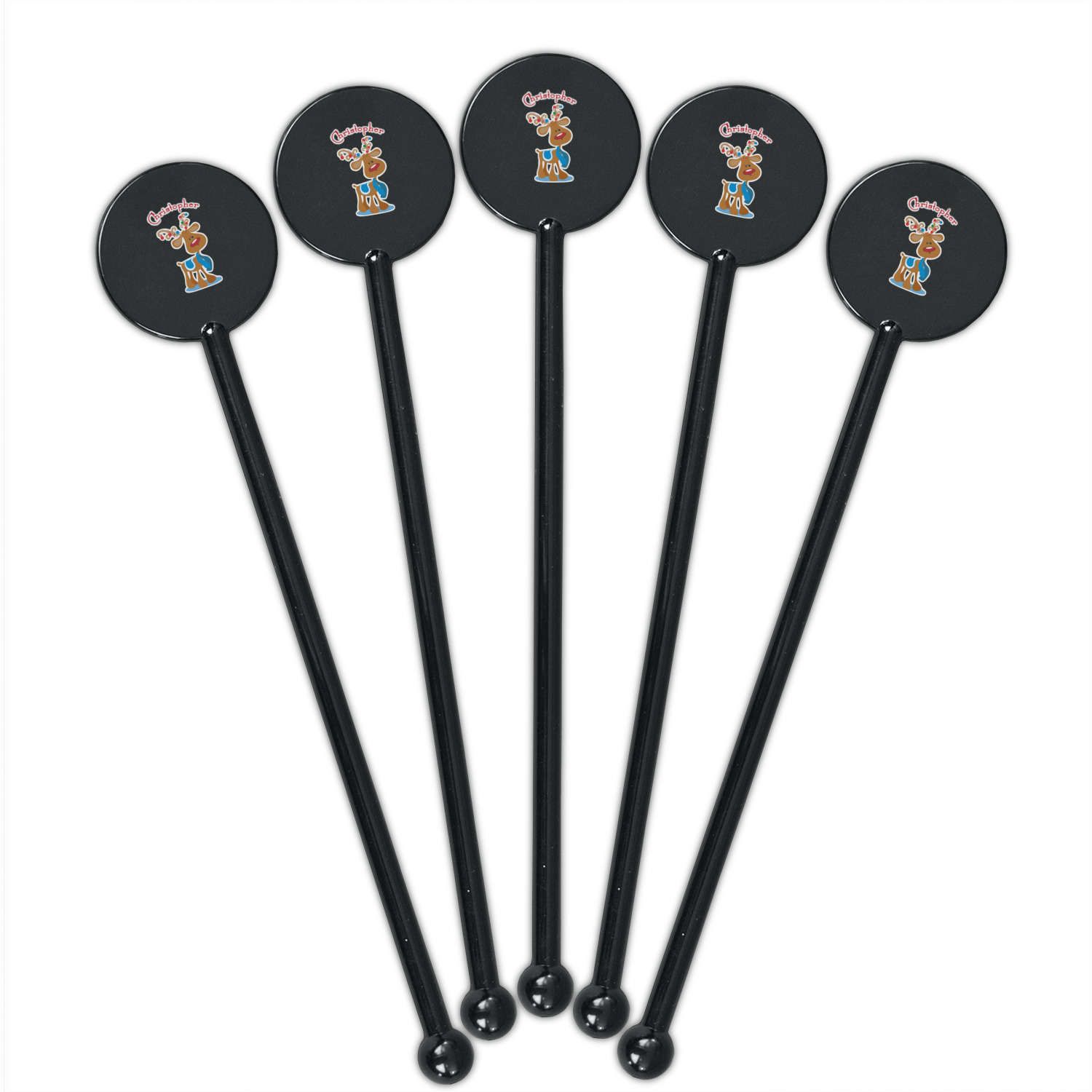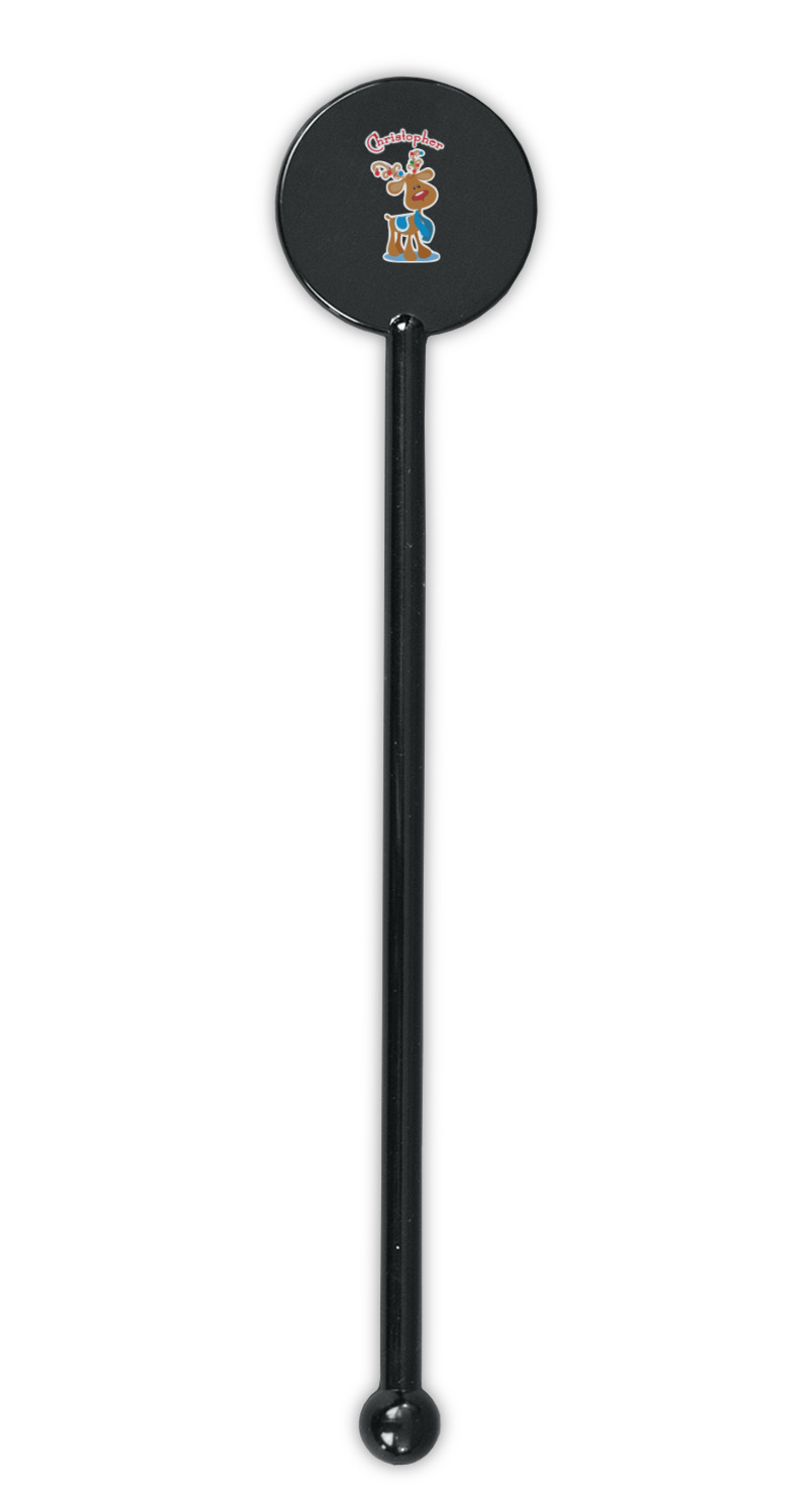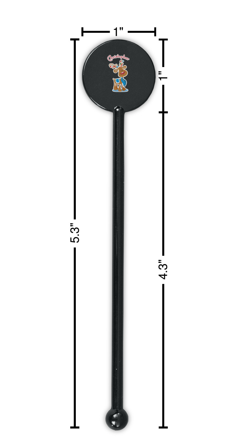 Ornaments Designs for 5.5" Round Plastic Stir Sticks - Black - Single-Sided