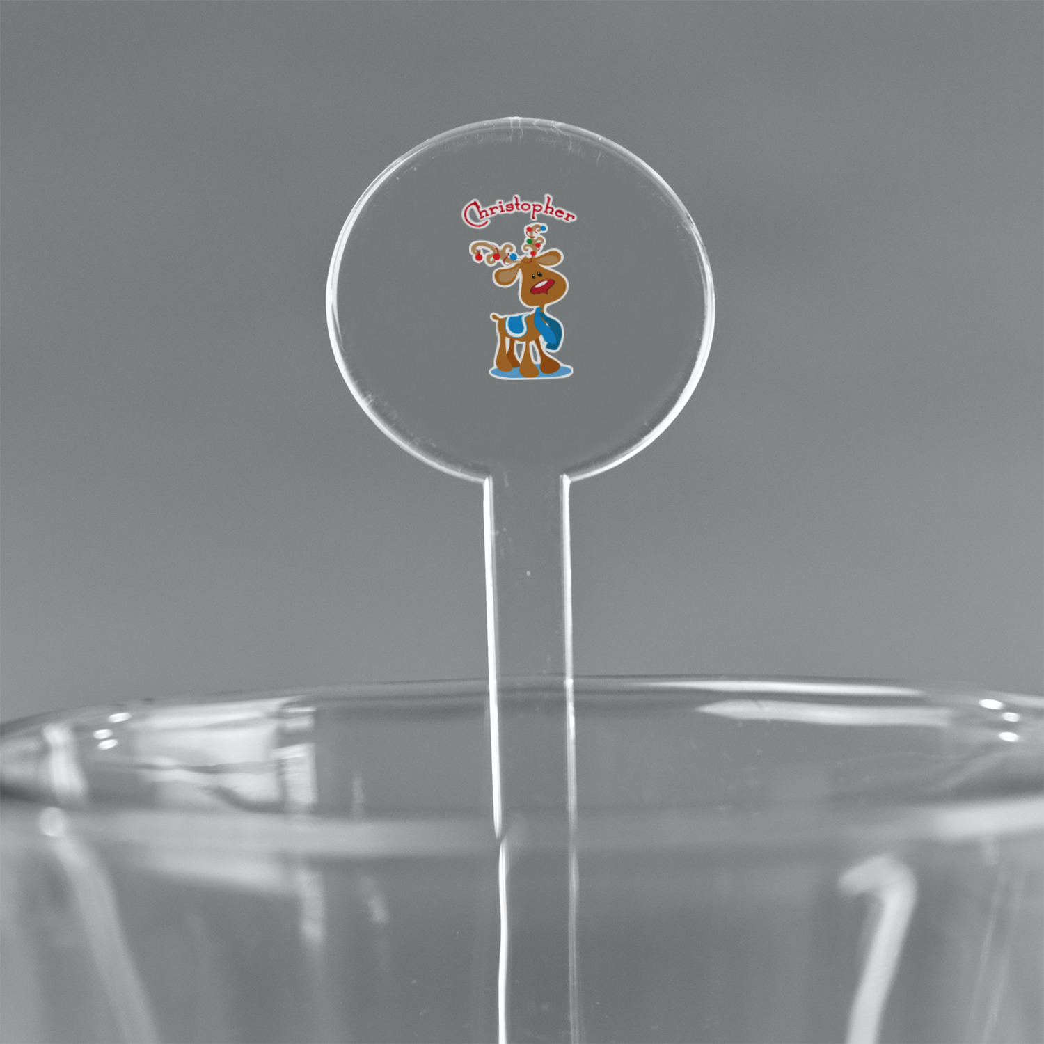 Who doesn't love reindeer? Everyone can agree this fun design of Santa's famous helpers clad in festive scarves and ornaments on their antlers, surrounded by candy canes, gingerbread men, and Christmas stockings, likely stuffed with even more goodies, is absolutely adorable. The ribbon and label are red, and the label includes a little reindeer, ready for the holidays, along with your name or text for personalization.
