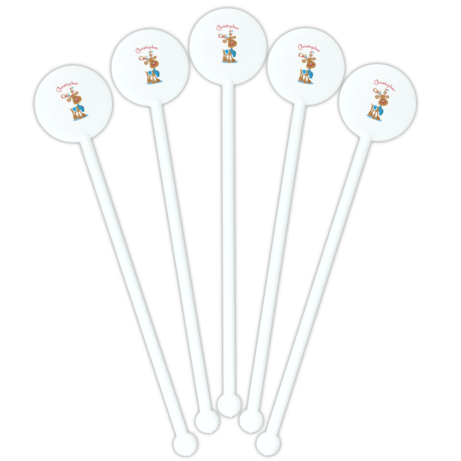 Ornaments Designs for 5.5" Round Plastic Stir Sticks - White - Single-Sided
