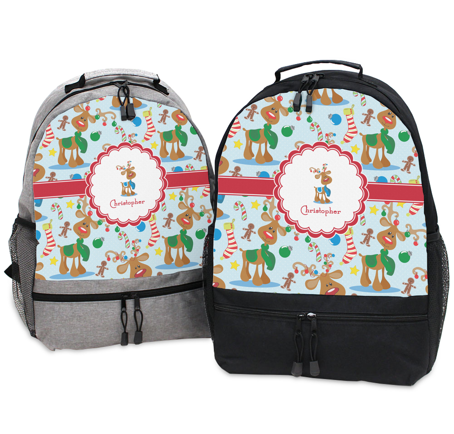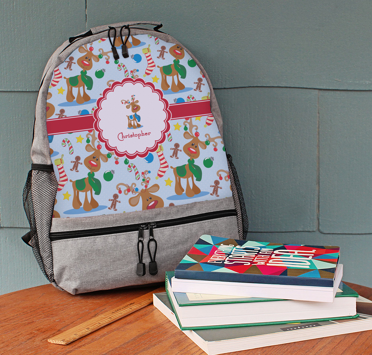 Who doesn't love reindeer? Everyone can agree this fun design of Santa's famous helpers clad in festive scarves and ornaments on their antlers, surrounded by candy canes, gingerbread men, and Christmas stockings, likely stuffed with even more goodies, is absolutely adorable. The ribbon and label are red, and the label includes a little reindeer, ready for the holidays, along with your name or text for personalization.