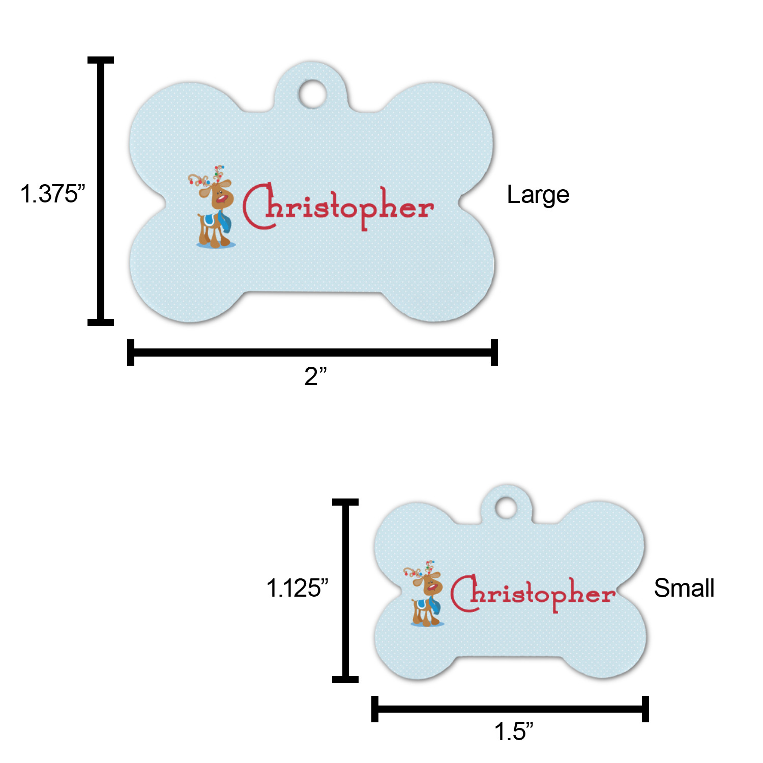 The small bone dog tag size is perfect to pair with our small dog collars, the large size pairs well with our large dog collars.