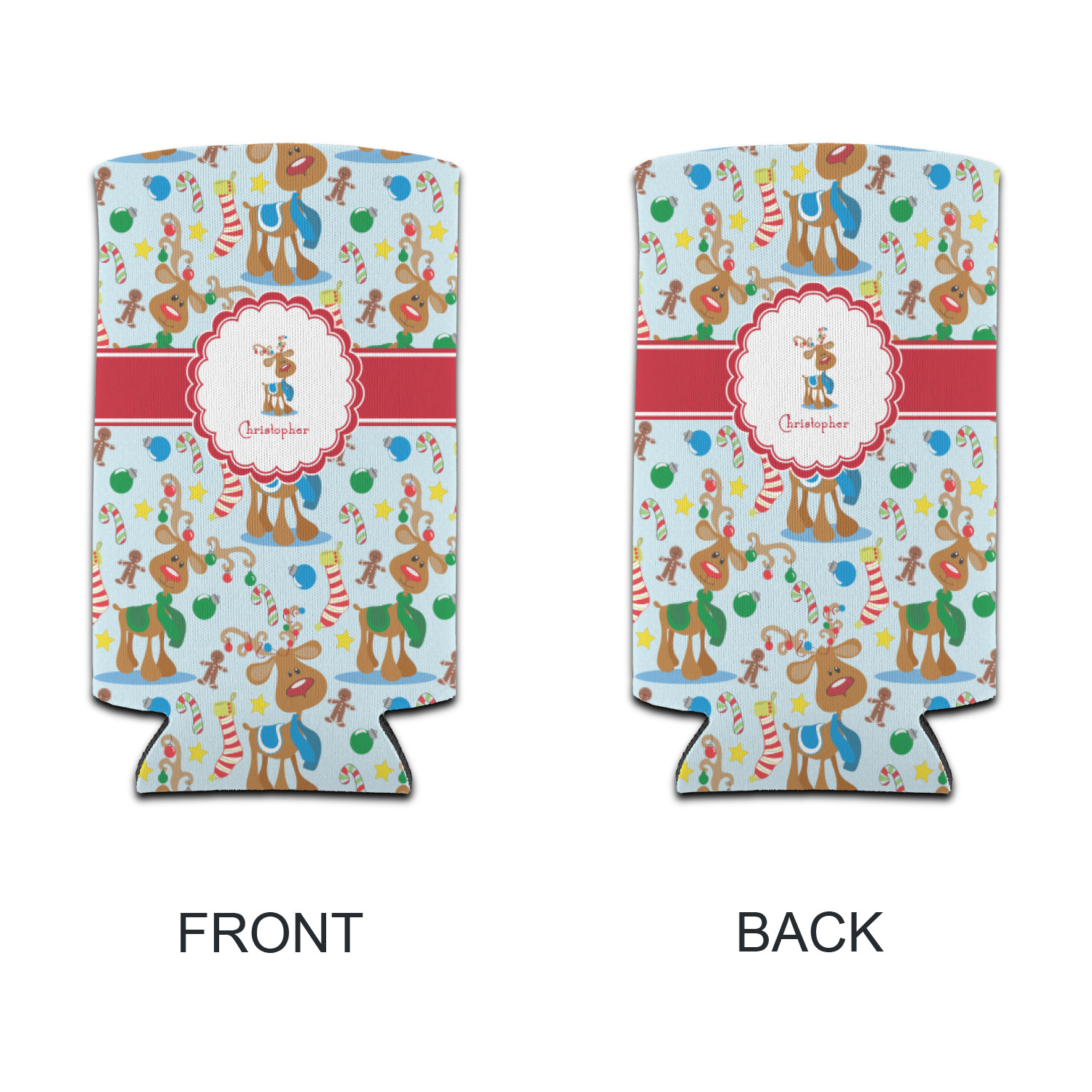 Who doesn't love reindeer? Everyone can agree this fun design of Santa's famous helpers clad in festive scarves and ornaments on their antlers, surrounded by candy canes, gingerbread men, and Christmas stockings, likely stuffed with even more goodies, is absolutely adorable. The ribbon and label are red, and the label includes a little reindeer, ready for the holidays, along with your name or text for personalization.