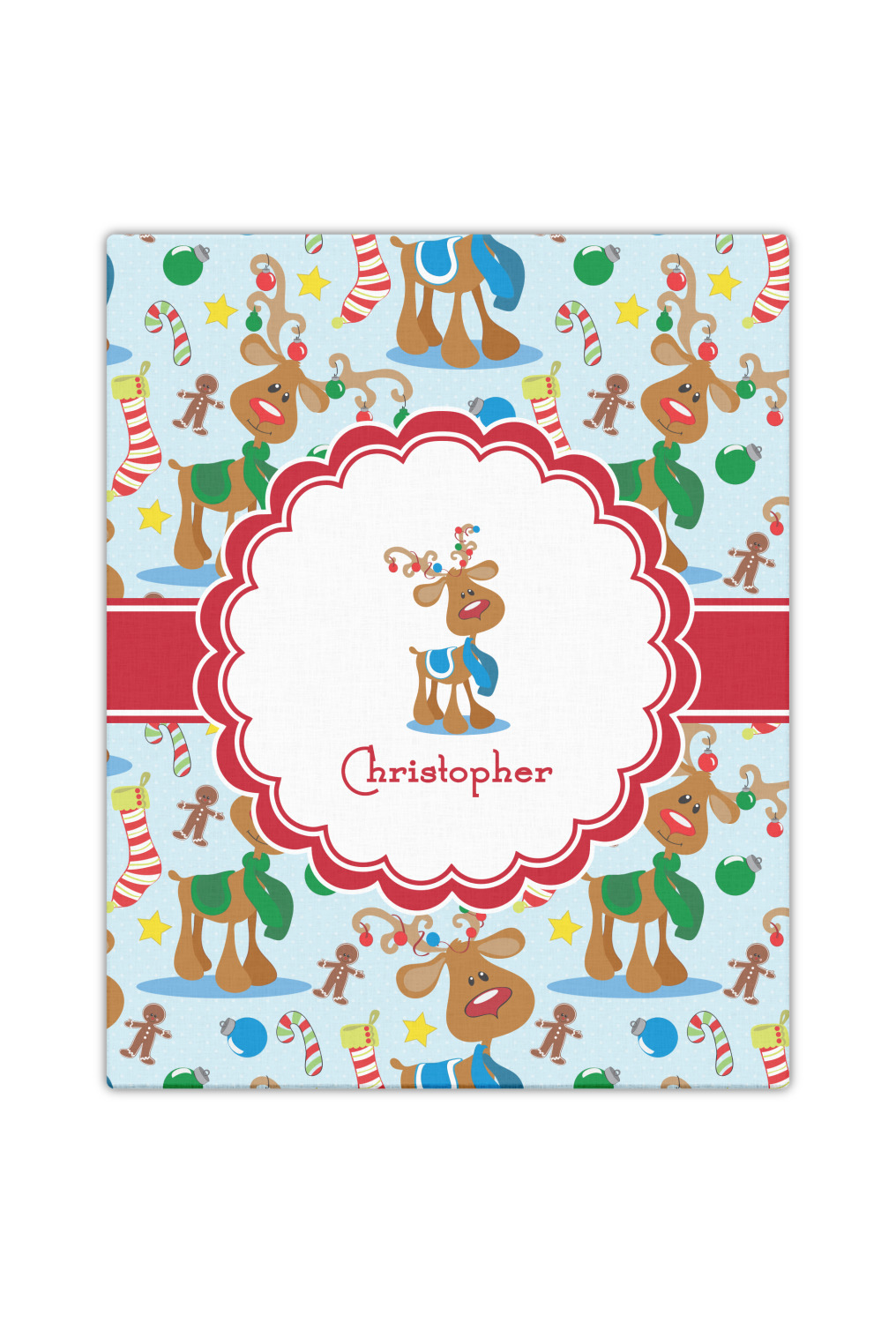 Who doesn't love reindeer? Everyone can agree this fun design of Santa's famous helpers clad in festive scarves and ornaments on their antlers, surrounded by candy canes, gingerbread men, and Christmas stockings, likely stuffed with even more goodies, is absolutely adorable. The ribbon and label are red, and the label includes a little reindeer, ready for the holidays, along with your name or text for personalization.