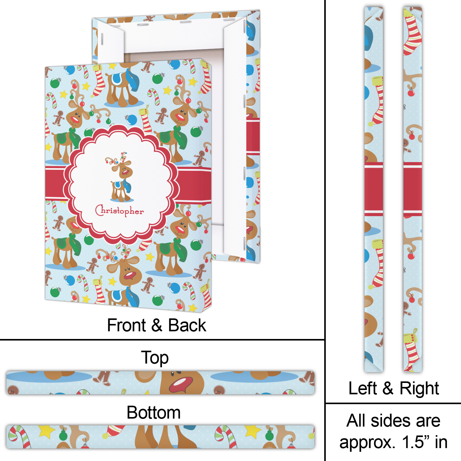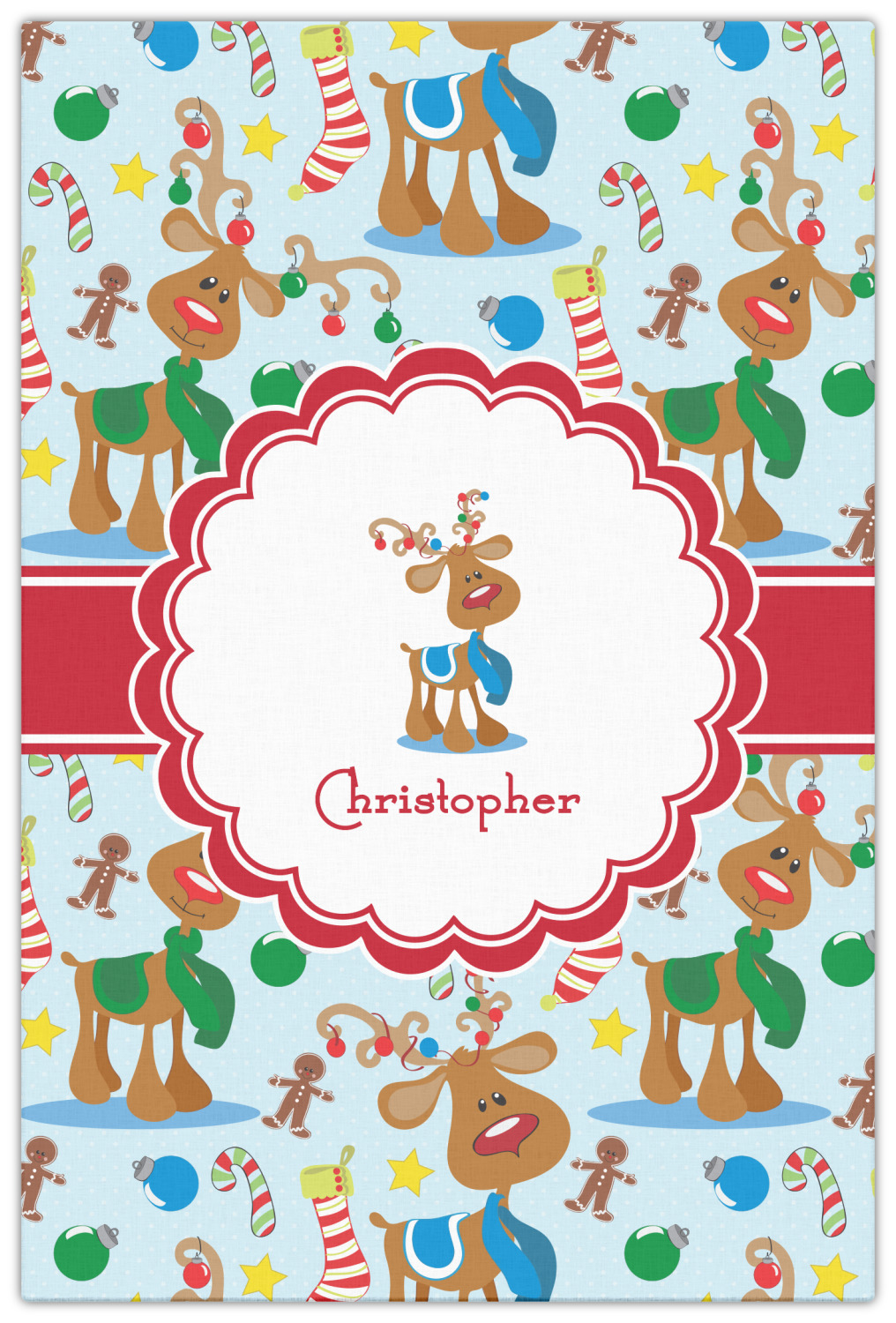 Who doesn't love reindeer? Everyone can agree this fun design of Santa's famous helpers clad in festive scarves and ornaments on their antlers, surrounded by candy canes, gingerbread men, and Christmas stockings, likely stuffed with even more goodies, is absolutely adorable. The ribbon and label are red, and the label includes a little reindeer, ready for the holidays, along with your name or text for personalization.