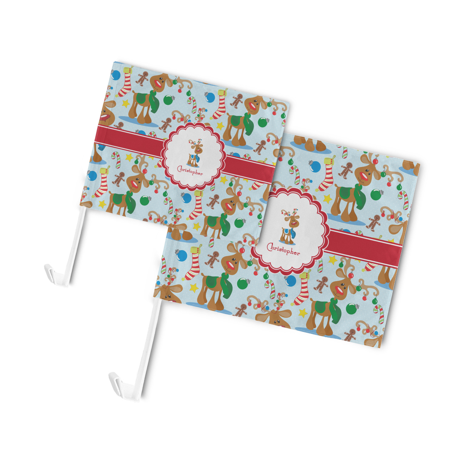 Our personalized flags are made from a durable, yet lightweight cloth that will proudly bear your logo or design of choice, while withstanding the outside elements. We have two size options - 8" x 11" and 11" x 15". Both come with a flag pole which includes a clip that secures the pole to the side window, whether it is rolled up or down. The flags are printed on both sides to display your design from all directions.