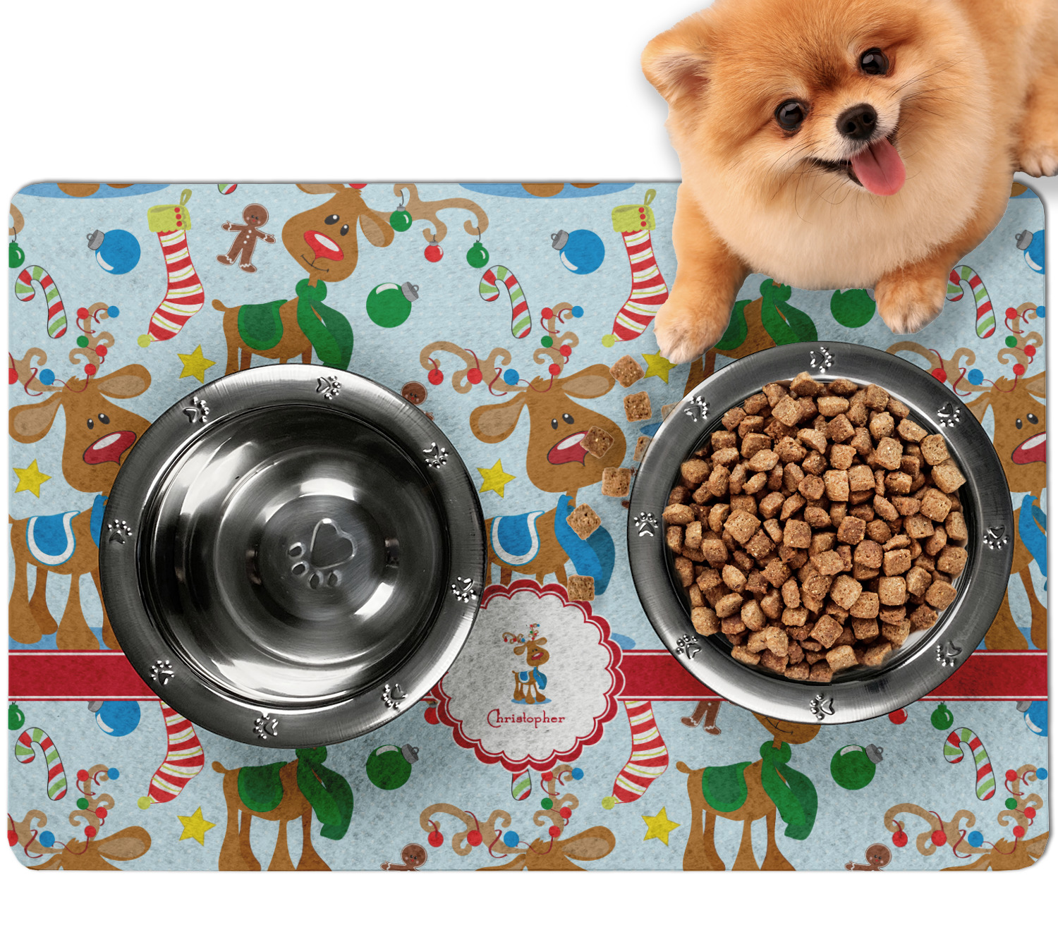 This dog bowl mat, fabricated from polyester, proudly displays your customized design on its top, while its bottom includes a non-slip rubber. This feature allows it to remain firmly in place, even when your dog spills his/her water. With 3 sizes available (18" x 12", 24" x 18", 30" x 24"), the pet food mat has ample space for both a food and water bowl for any sized dogs. Though specified for dogs' use, these mats are also a splendid option for cats.