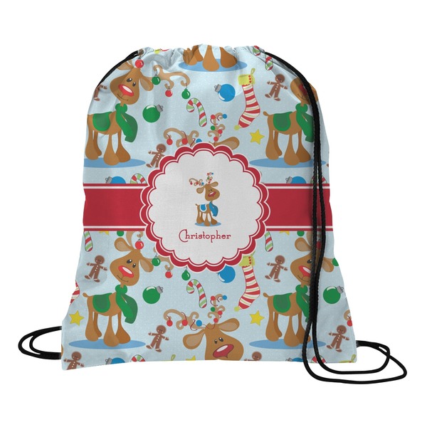 Who doesn't love reindeer? Everyone can agree this fun design of Santa's famous helpers clad in festive scarves and ornaments on their antlers, surrounded by candy canes, gingerbread men, and Christmas stockings, likely stuffed with even more goodies, is absolutely adorable. The ribbon and label are red, and the label includes a little reindeer, ready for the holidays, along with your name or text for personalization.