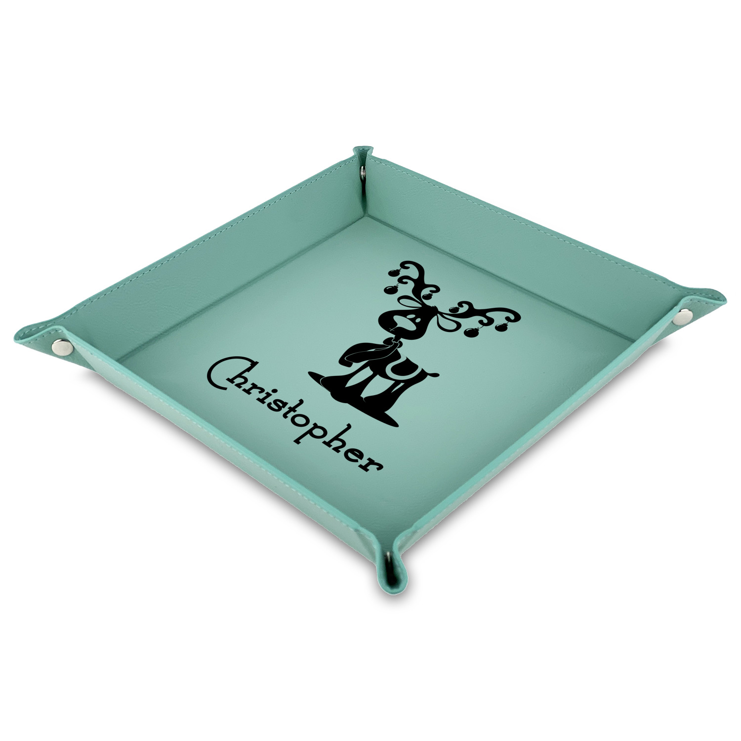 Ornaments Designs for Faux Leather Dice Trays - 9" x 9" - Teal