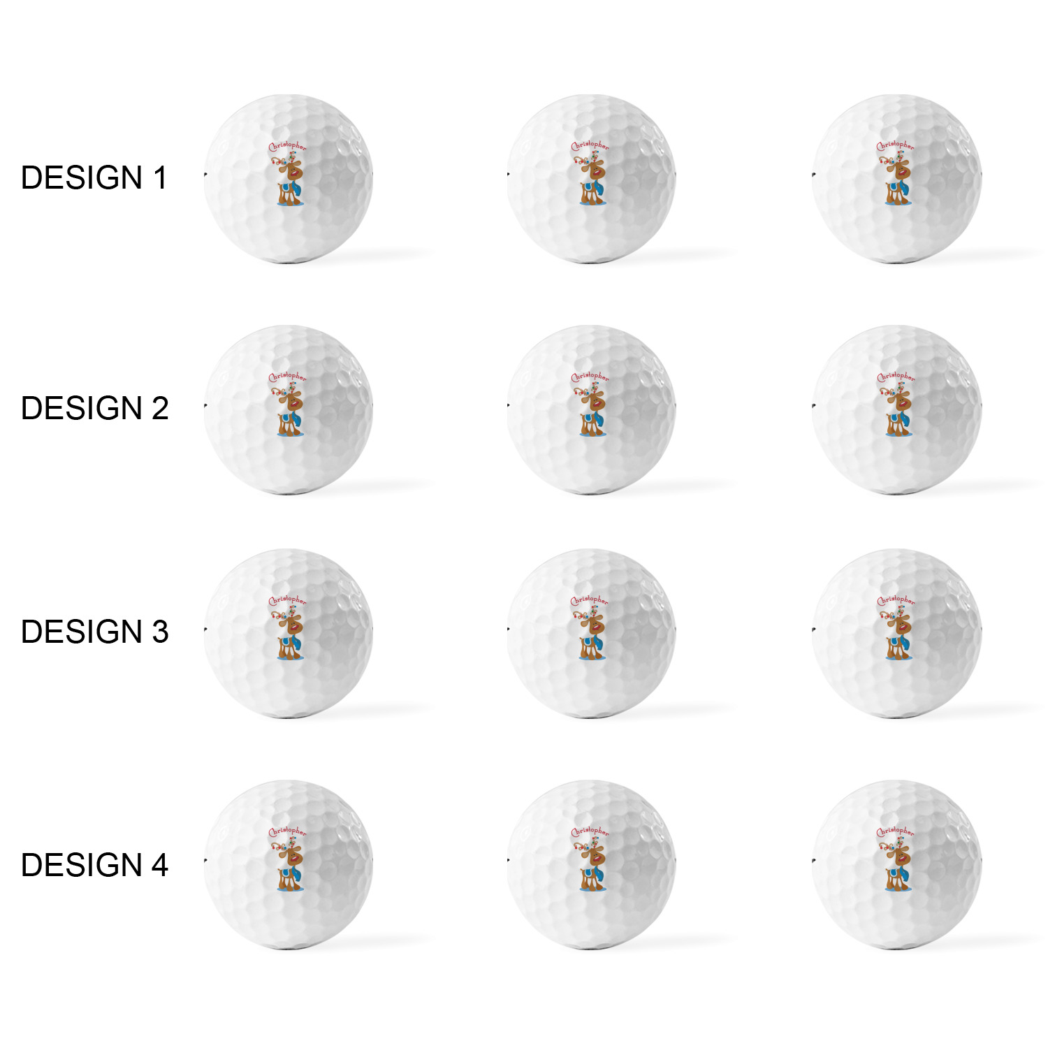 Printed in a 7/8" circle on each ball, you can customize these with our design studio or use your own designs. For a set of 3 you can design each one individually, for a set of 12 you will be able to use 4 unique designs and will receive 3 balls with each design.