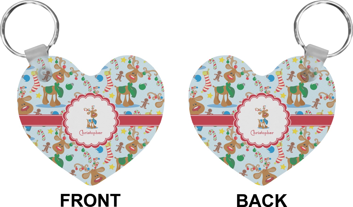 Our personalized keychains attach to the included metal, split key ring with a plastic, removable snap. Since a metal ring is included with your purchase, you have the liberty to keep your keys together on the ring, with or without your unique keychain. We offer this keychain in three different shapes: circle, heart, or diamond. We print your personalized design(s) on both sides of the key chain, and the surface has a glossy, reflective finish that only emphasizes your design. Each keychain is approximately 2.25 by 2.25 inches.