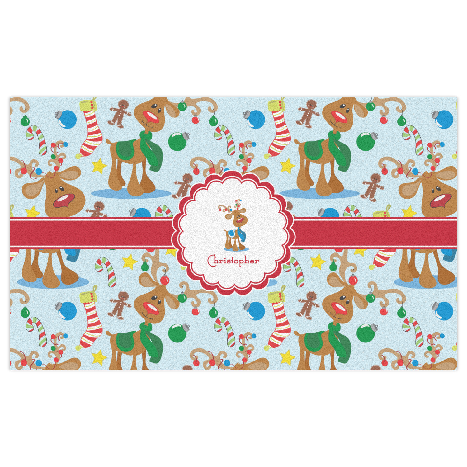 Who doesn't love reindeer? Everyone can agree this fun design of Santa's famous helpers clad in festive scarves and ornaments on their antlers, surrounded by candy canes, gingerbread men, and Christmas stockings, likely stuffed with even more goodies, is absolutely adorable. The ribbon and label are red, and the label includes a little reindeer, ready for the holidays, along with your name or text for personalization.