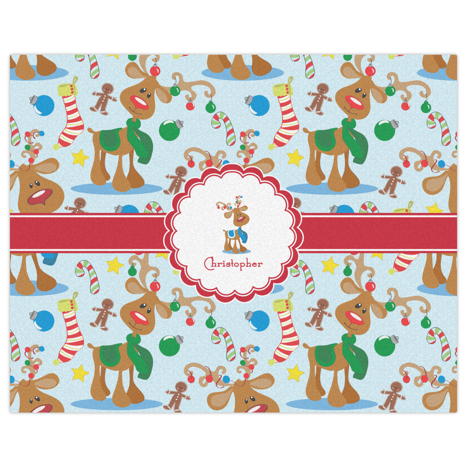 Who doesn't love reindeer? Everyone can agree this fun design of Santa's famous helpers clad in festive scarves and ornaments on their antlers, surrounded by candy canes, gingerbread men, and Christmas stockings, likely stuffed with even more goodies, is absolutely adorable. The ribbon and label are red, and the label includes a little reindeer, ready for the holidays, along with your name or text for personalization.