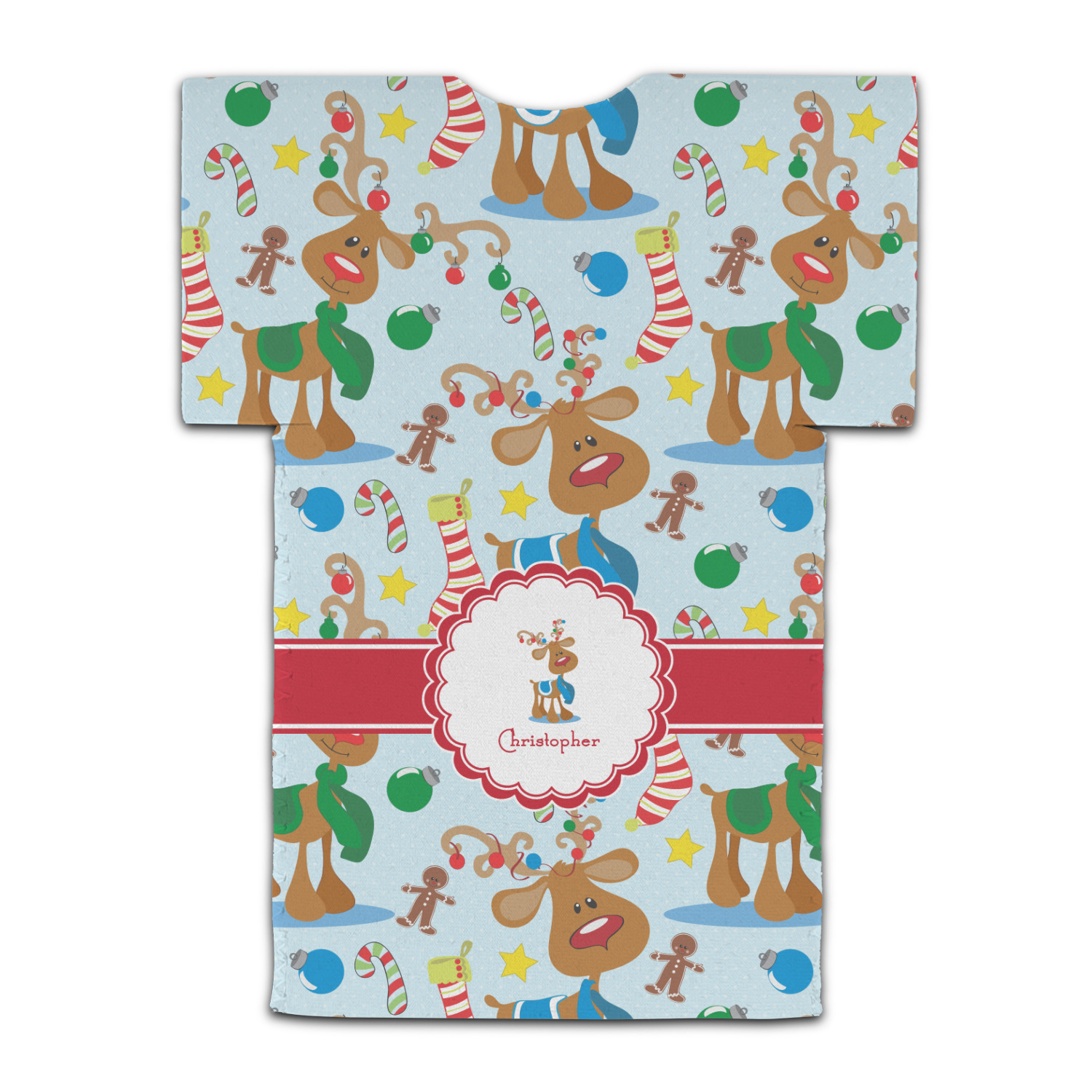 Who doesn't love reindeer? Everyone can agree this fun design of Santa's famous helpers clad in festive scarves and ornaments on their antlers, surrounded by candy canes, gingerbread men, and Christmas stockings, likely stuffed with even more goodies, is absolutely adorable. The ribbon and label are red, and the label includes a little reindeer, ready for the holidays, along with your name or text for personalization.