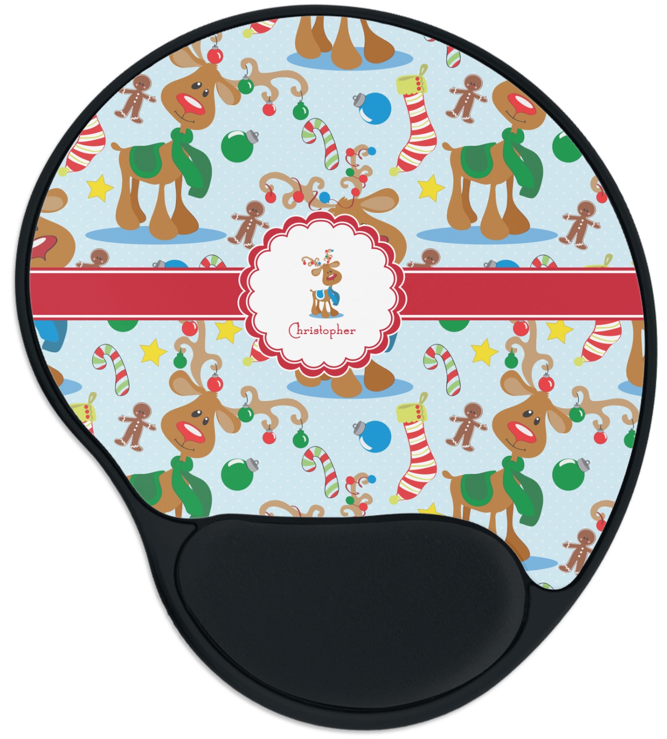 The top of these personalized mouse pads are made from a polyester, while the underside is plastic. The back of these mouse mats include rubber feet to prevent any slippage while in use. A padded wrist support, made from plush memory foam, occupies the bottom section of these computer mouse pads. Your customized design is printed onto the face of this mat, with the remaining sides and support piece colored in black. The mat itself is rounded and measures at 10.25" x 9.13".