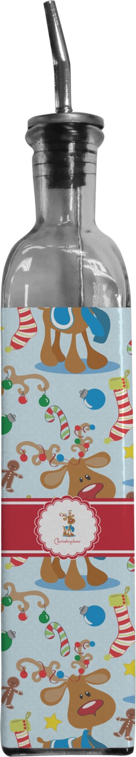 Who doesn't love reindeer? Everyone can agree this fun design of Santa's famous helpers clad in festive scarves and ornaments on their antlers, surrounded by candy canes, gingerbread men, and Christmas stockings, likely stuffed with even more goodies, is absolutely adorable. The ribbon and label are red, and the label includes a little reindeer, ready for the holidays, along with your name or text for personalization.