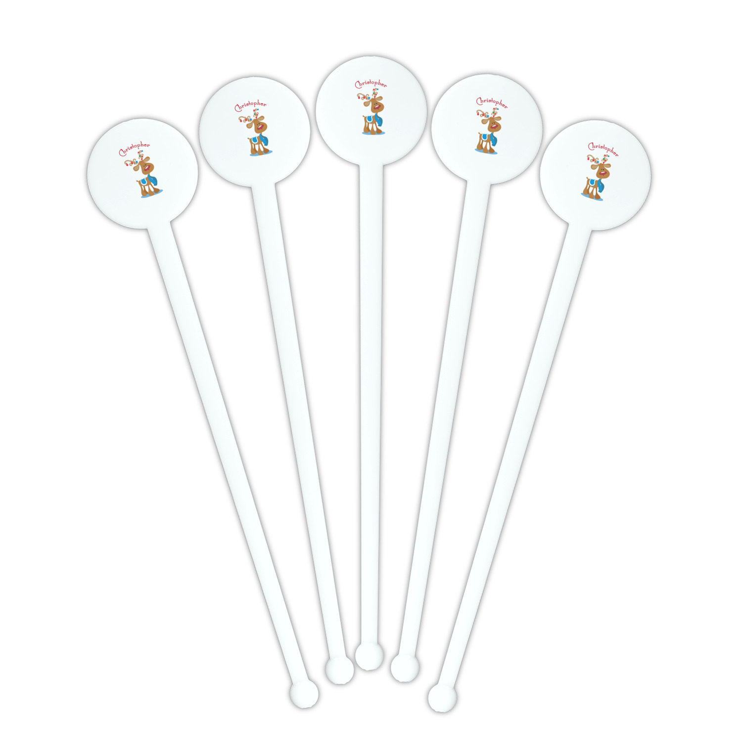 Who doesn't love reindeer? Everyone can agree this fun design of Santa's famous helpers clad in festive scarves and ornaments on their antlers, surrounded by candy canes, gingerbread men, and Christmas stockings, likely stuffed with even more goodies, is absolutely adorable. The ribbon and label are red, and the label includes a little reindeer, ready for the holidays, along with your name or text for personalization.