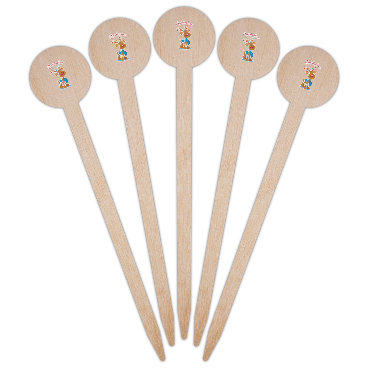 Who doesn't love reindeer? Everyone can agree this fun design of Santa's famous helpers clad in festive scarves and ornaments on their antlers, surrounded by candy canes, gingerbread men, and Christmas stockings, likely stuffed with even more goodies, is absolutely adorable. The ribbon and label are red, and the label includes a little reindeer, ready for the holidays, along with your name or text for personalization.