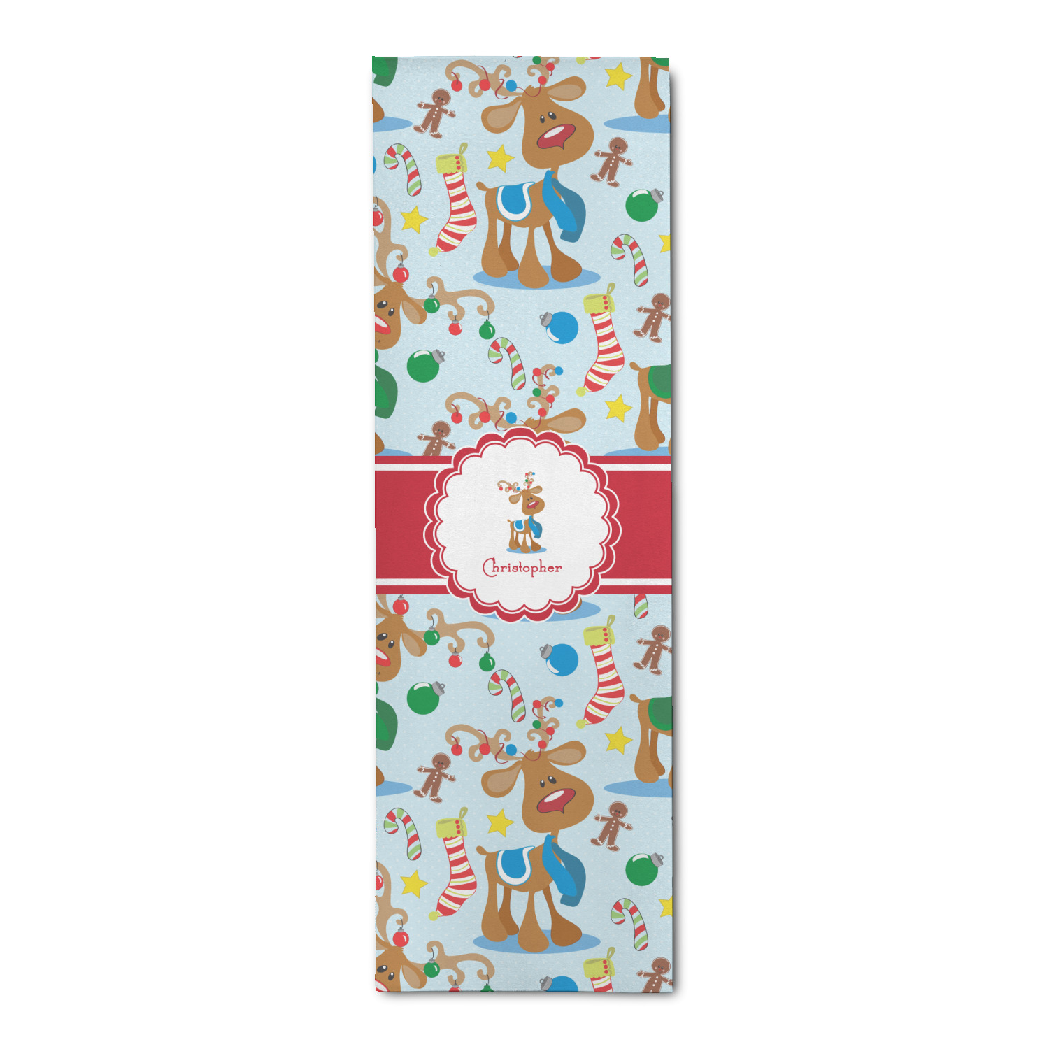 Who doesn't love reindeer? Everyone can agree this fun design of Santa's famous helpers clad in festive scarves and ornaments on their antlers, surrounded by candy canes, gingerbread men, and Christmas stockings, likely stuffed with even more goodies, is absolutely adorable. The ribbon and label are red, and the label includes a little reindeer, ready for the holidays, along with your name or text for personalization.