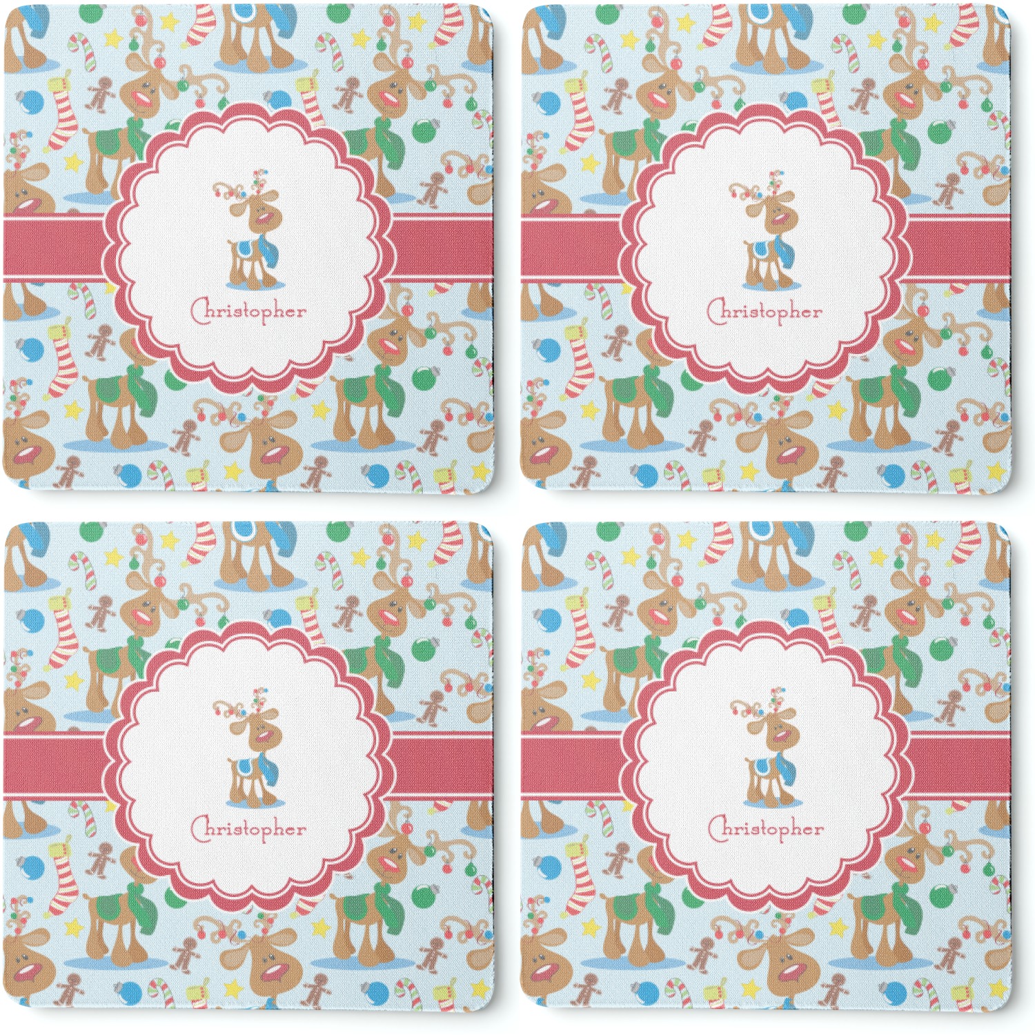 Candy Canes Designs for Square Rubber Backed Coasters - Set of 4