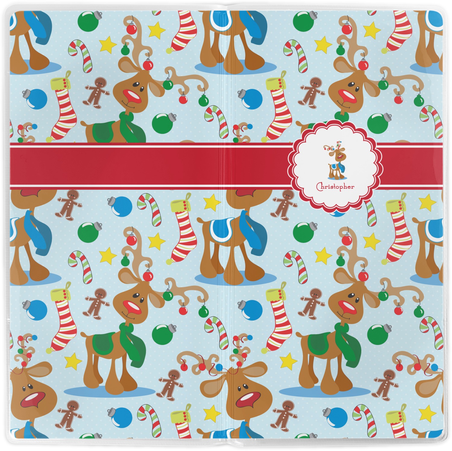Who doesn't love reindeer? Everyone can agree this fun design of Santa's famous helpers clad in festive scarves and ornaments on their antlers, surrounded by candy canes, gingerbread men, and Christmas stockings, likely stuffed with even more goodies, is absolutely adorable. The ribbon and label are red, and the label includes a little reindeer, ready for the holidays, along with your name or text for personalization.