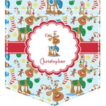 Who doesn't love reindeer? Everyone can agree this fun design of Santa's famous helpers clad in festive scarves and ornaments on their antlers, surrounded by candy canes, gingerbread men, and Christmas stockings, likely stuffed with even more goodies, is absolutely adorable. The ribbon and label are red, and the label includes a little reindeer, ready for the holidays, along with your name or text for personalization.
