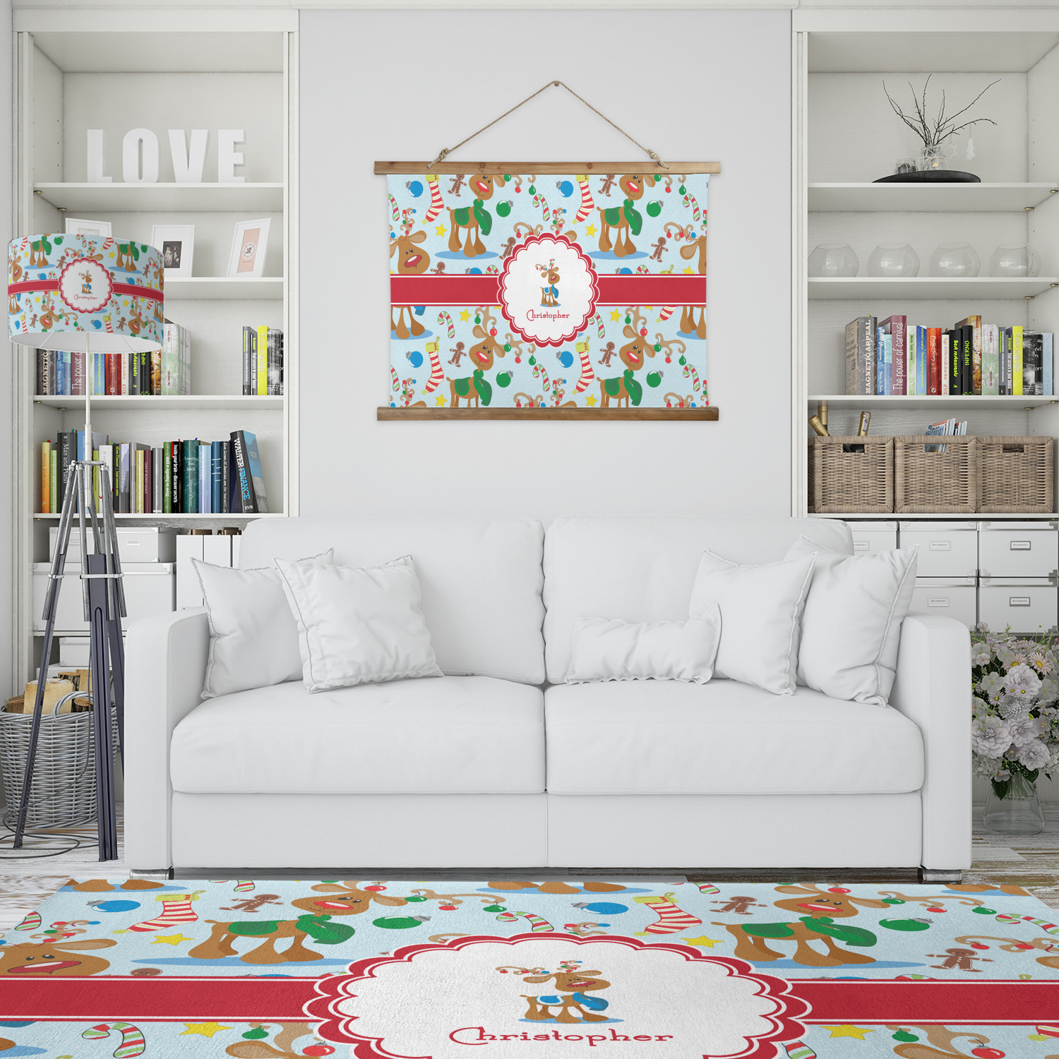 Who doesn't love reindeer? Everyone can agree this fun design of Santa's famous helpers clad in festive scarves and ornaments on their antlers, surrounded by candy canes, gingerbread men, and Christmas stockings, likely stuffed with even more goodies, is absolutely adorable. The ribbon and label are red, and the label includes a little reindeer, ready for the holidays, along with your name or text for personalization.