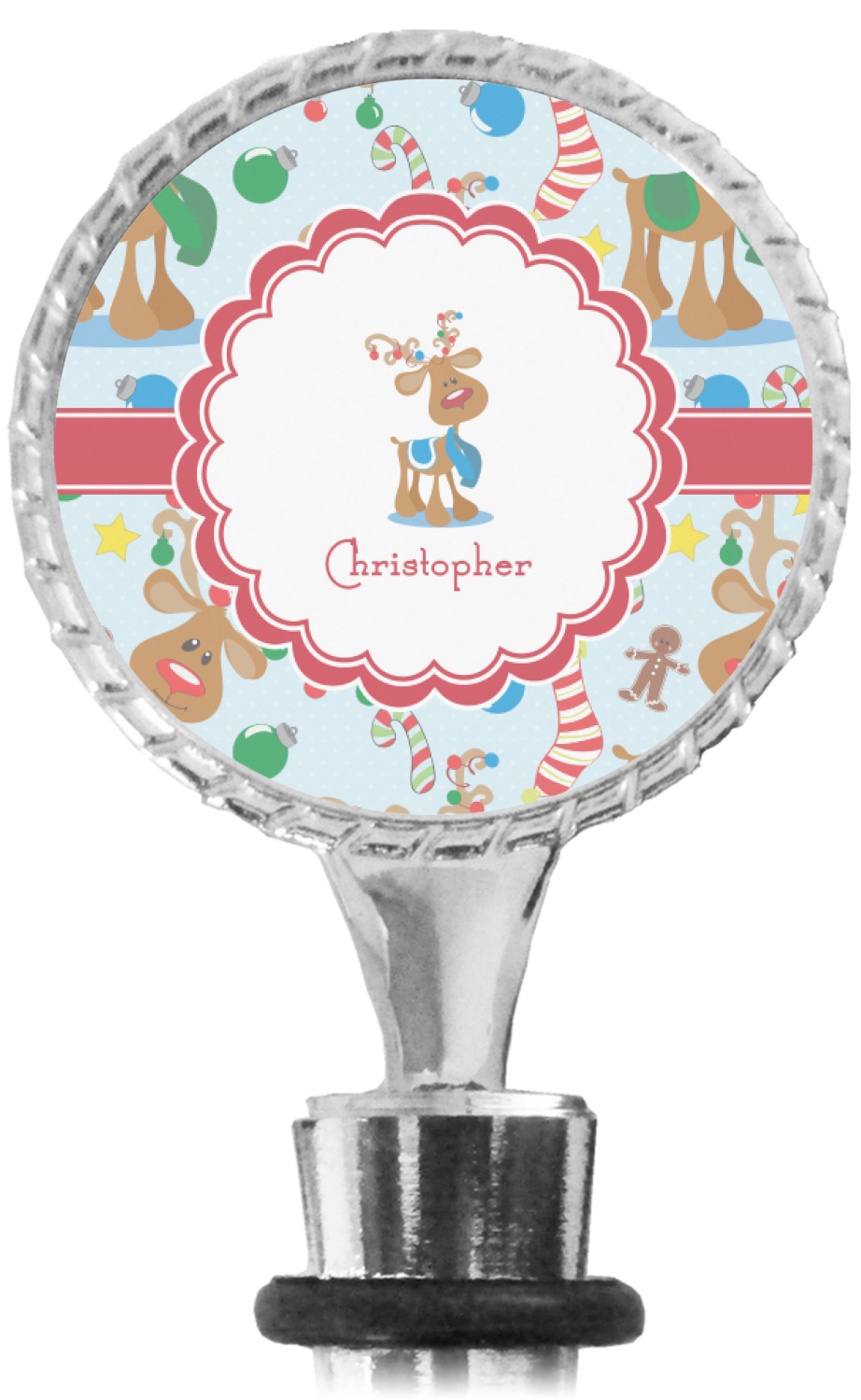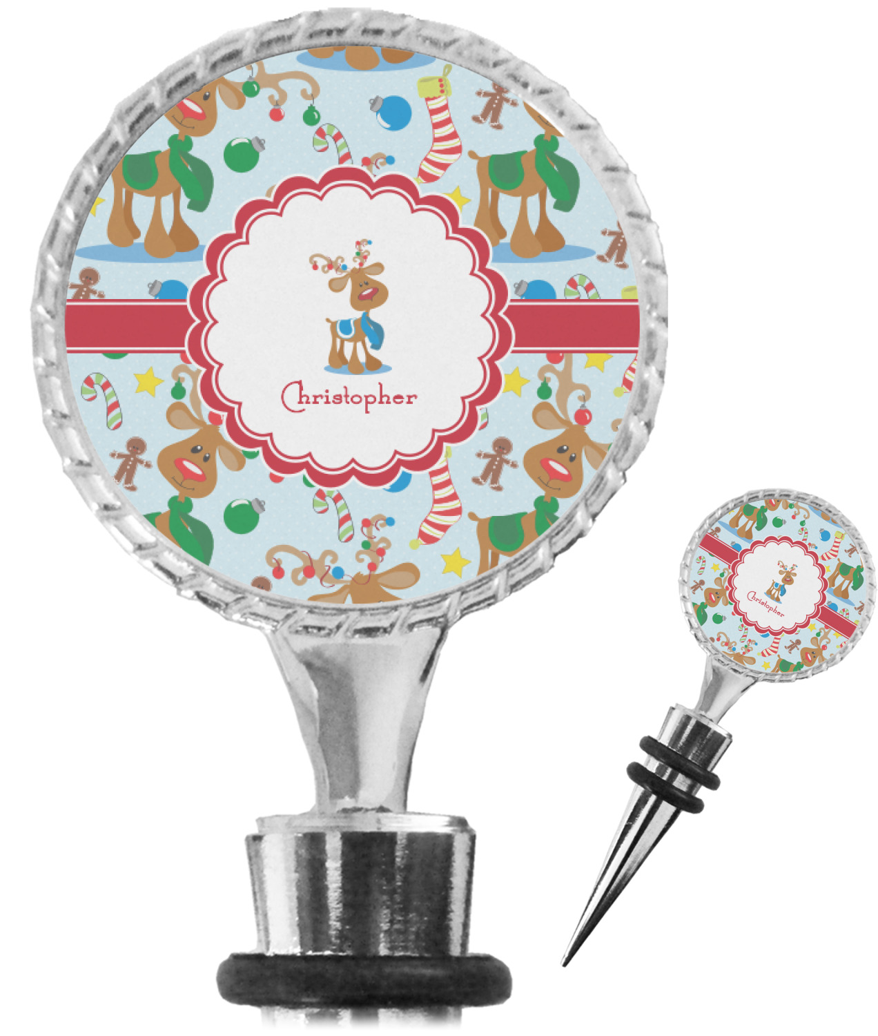 The top part of your bottle stopper is comprised of a zinc ring that displays your customization(s) in its middle, on both sides. The ring is heavy duty, with a bright chrome finish. The body of the wine stoppers have two silicone rings to provide an airtight seal. These wine bottle stoppers measure at 1.625" L x 0.8125" W x 4.625" H; your custom wine stopper is meant to fit into most standard-sized wine bottles.